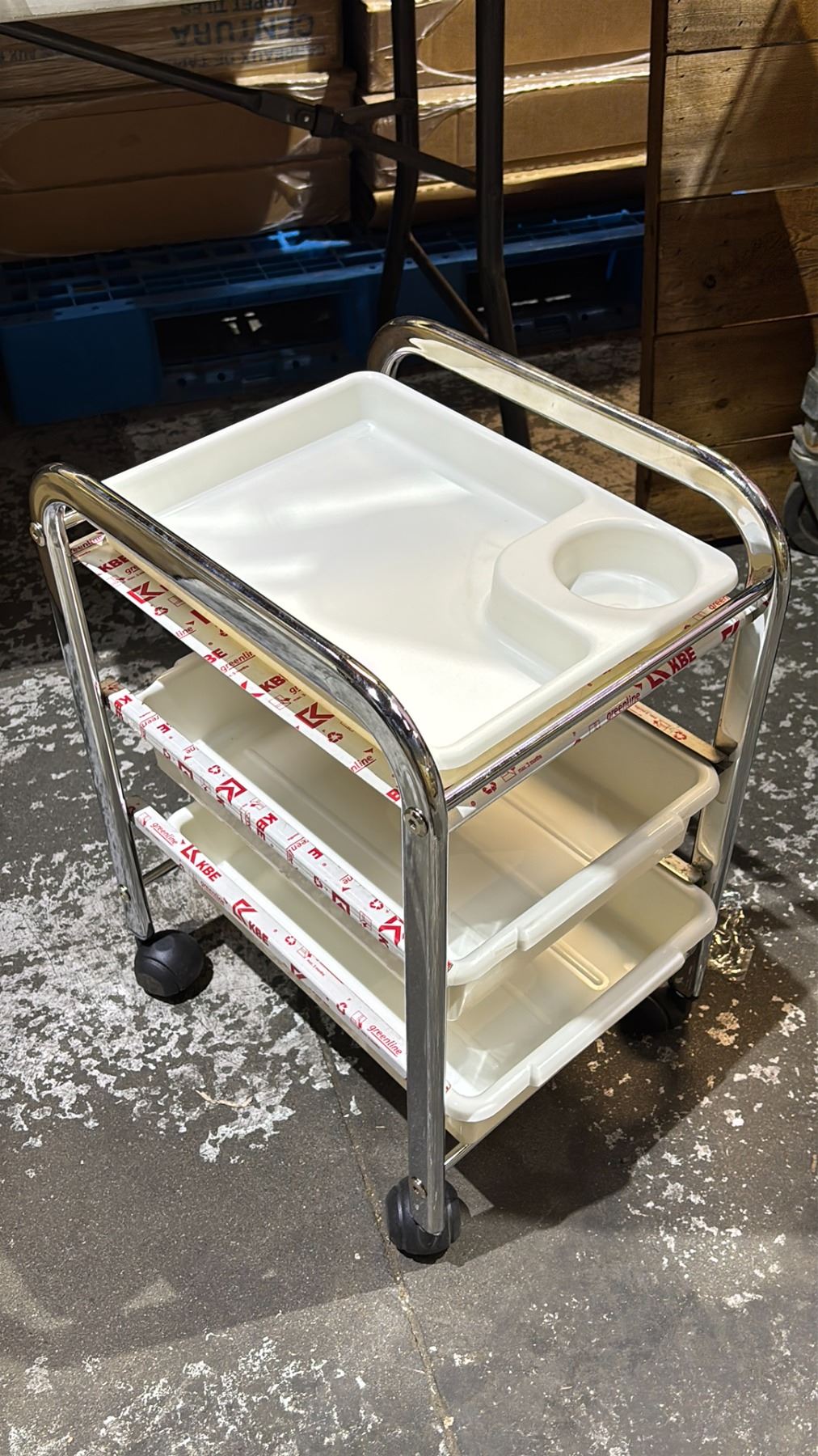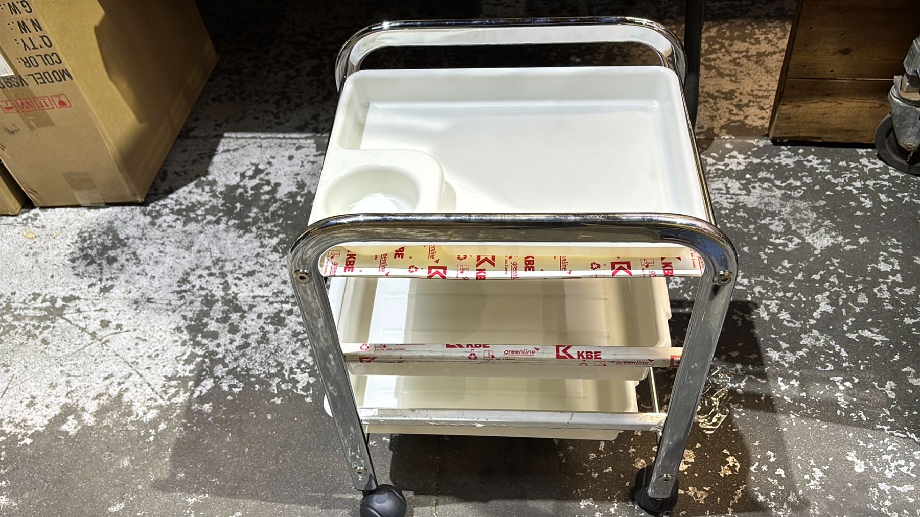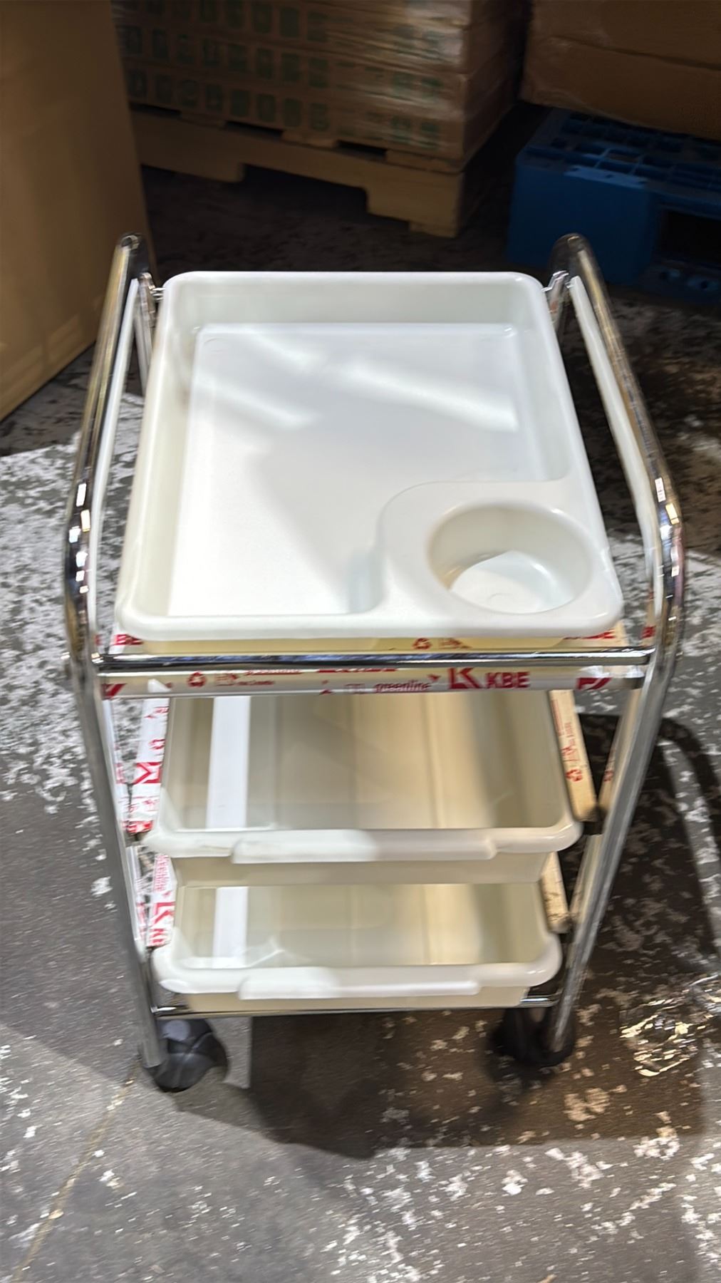 WHITE 3-SHELF SALON TROLLEY *IN BOX* (APPROX. 20" TALL)
