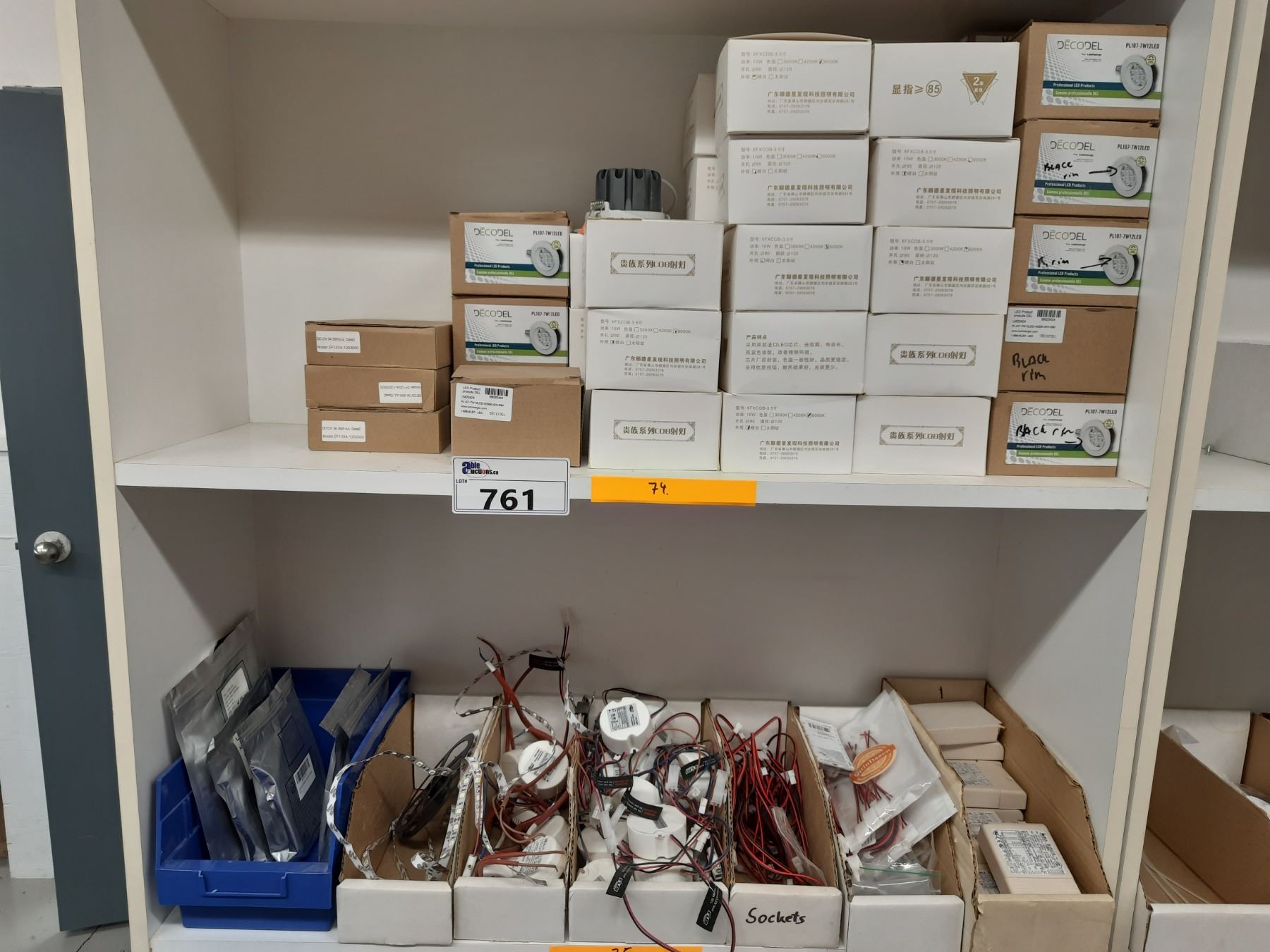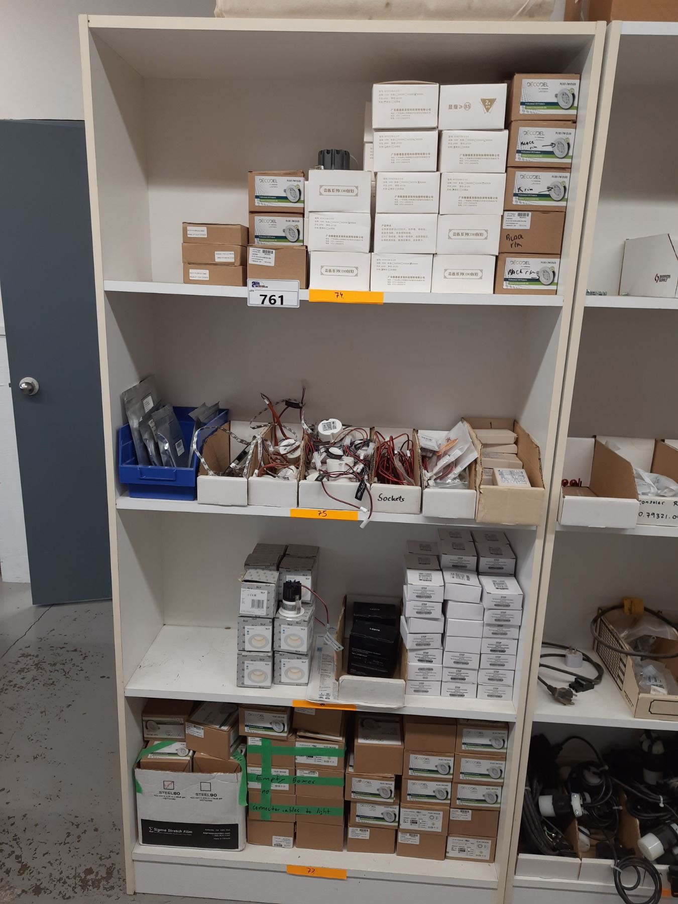 WHITE 5 TIER SHELF WITH ASSORTED LED MINI LIGHTS, RECESSED MINI LIGHTS & ELECTRICAL COMPONENTS