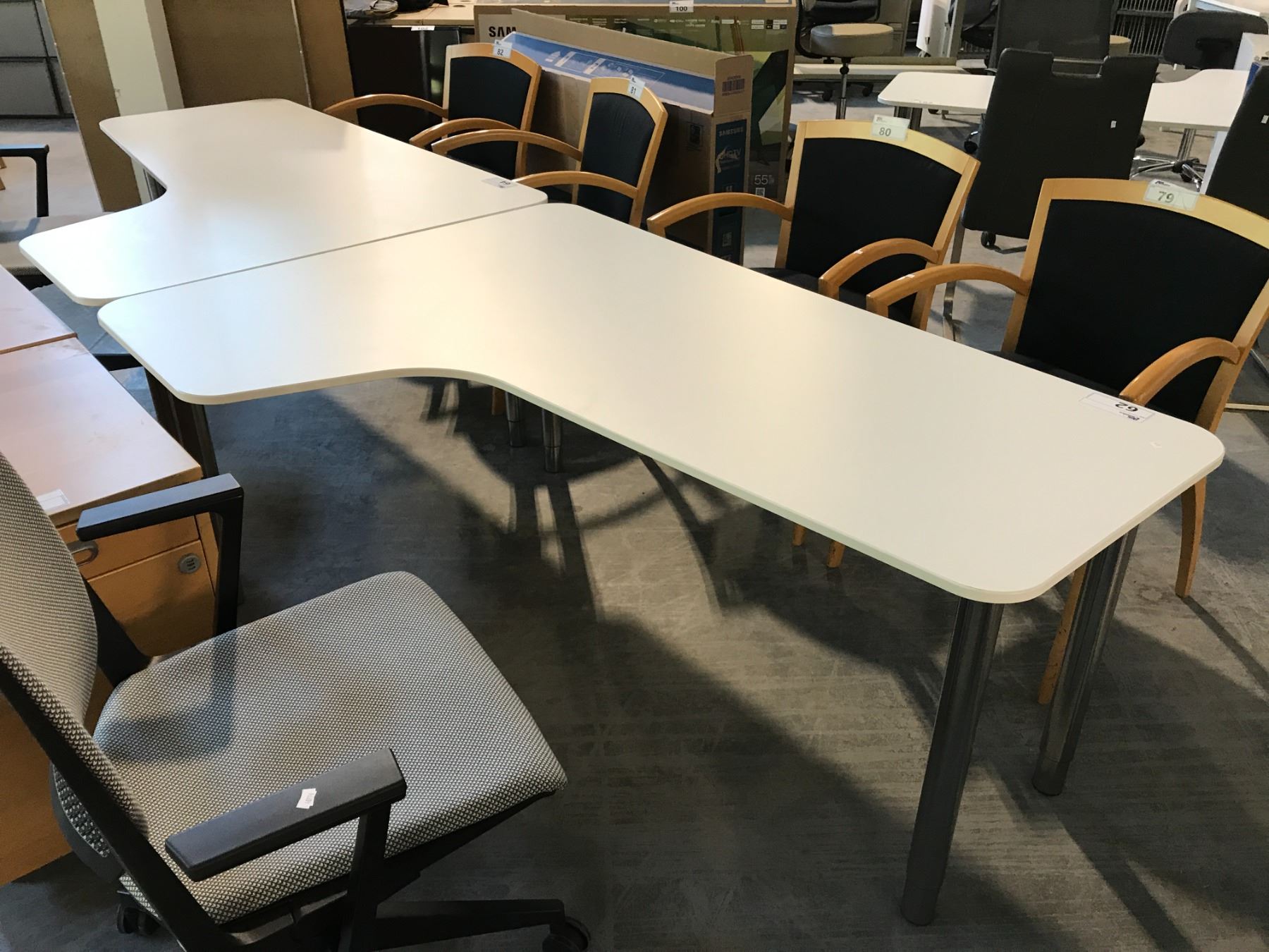 WHITE 5' X 4' CORNER COMPUTER TABLE (RH)