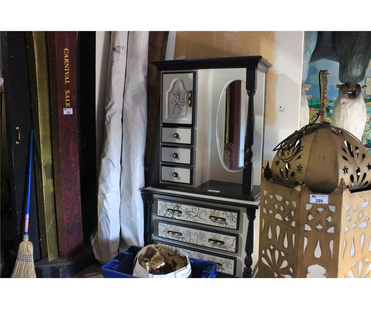 WHITE AND BLACK HAND PAINTED 6 DRAWER SINGLE DOOR ARMOIRE