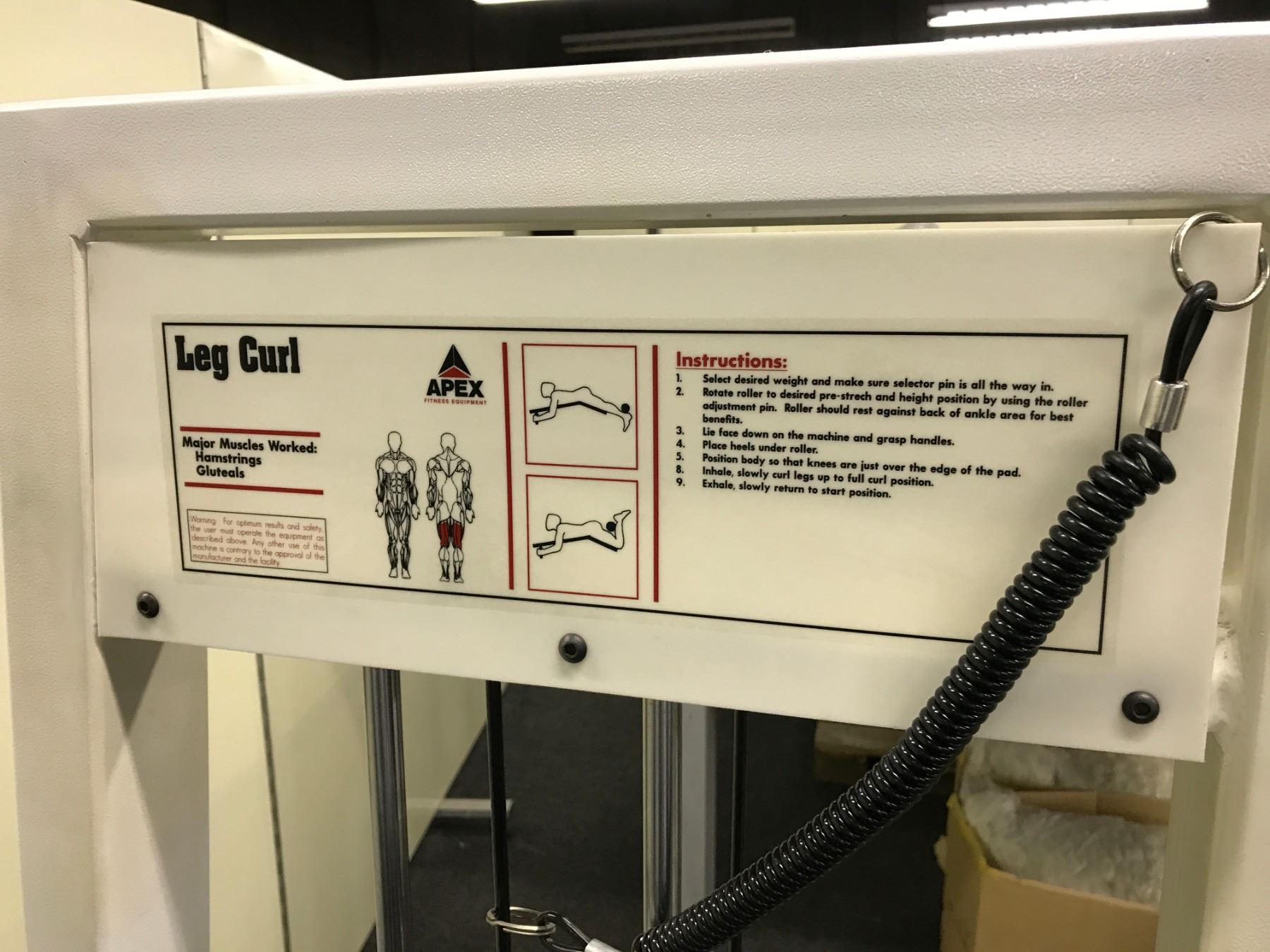 WHITE APEX HORIZONTAL LEG CURL EXERCISE MACHINE