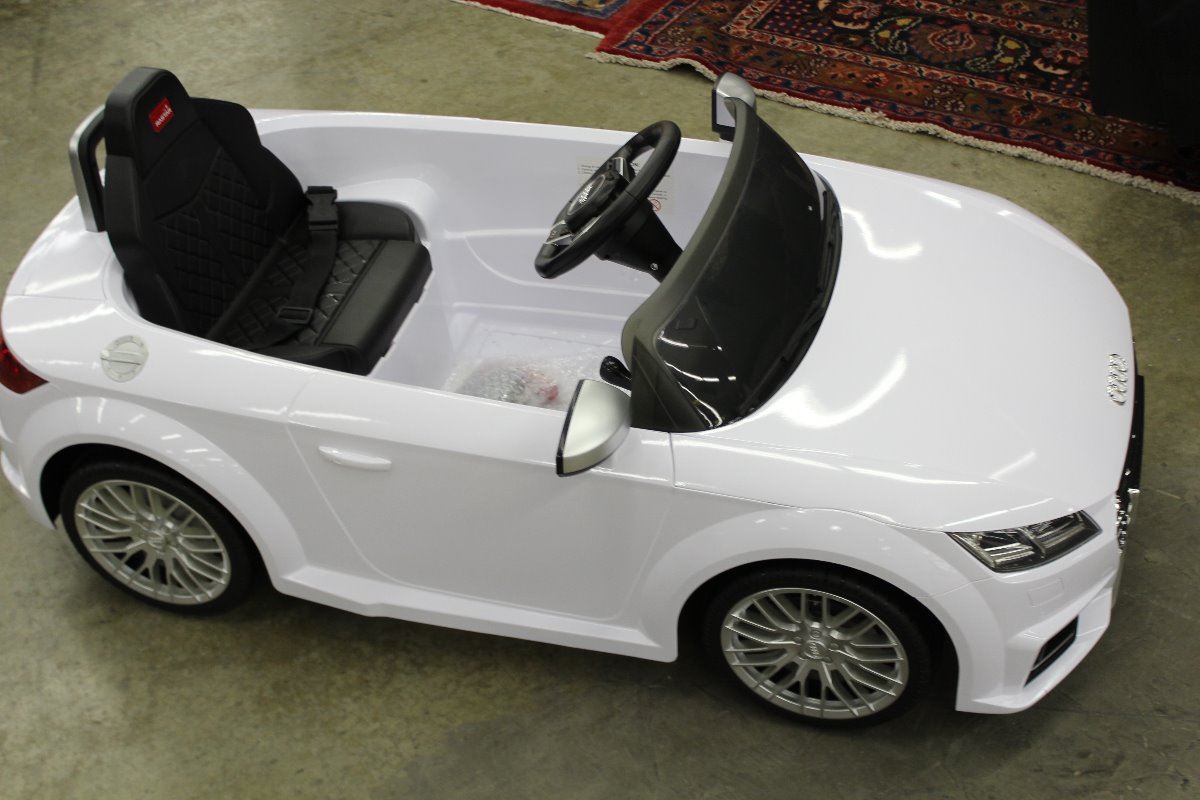 WHITE AUDI TTS RIDE-IN/REMOTE CONTROL CAR, WITH WORKING LIGHTS, SOUNDS AND PEDALS