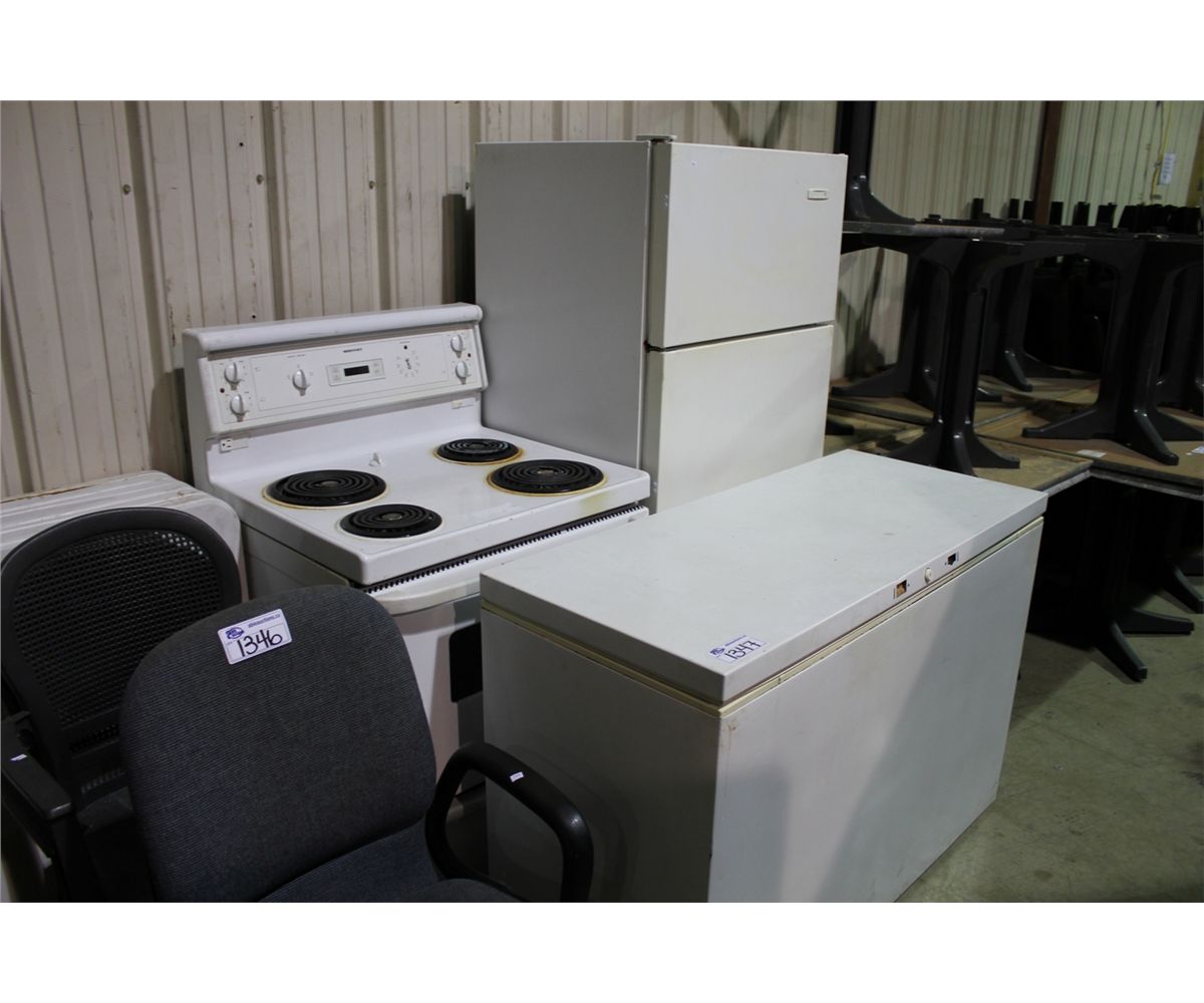 WHITE CHEST FREEZER, FRIDGE AND STOVE
