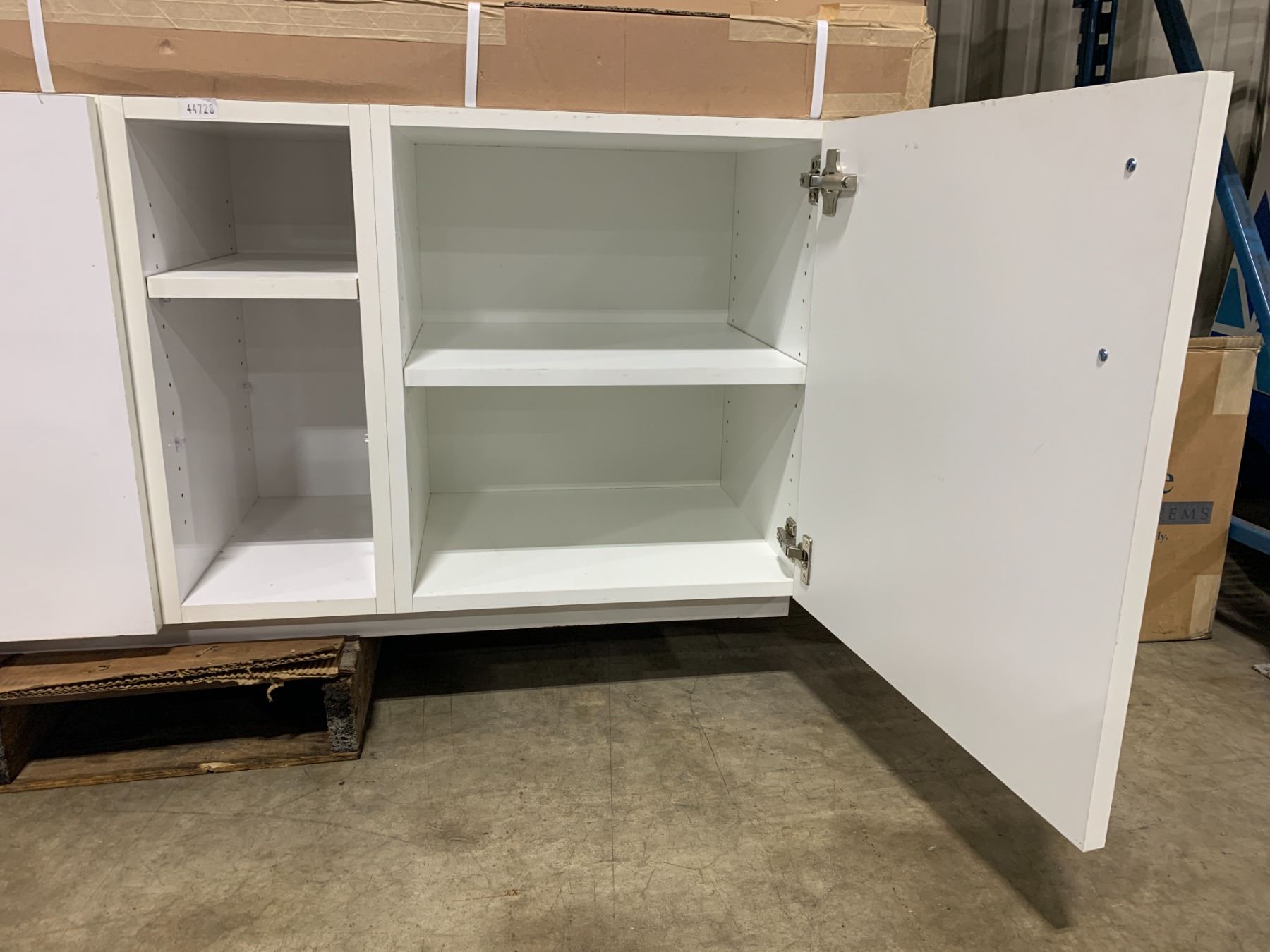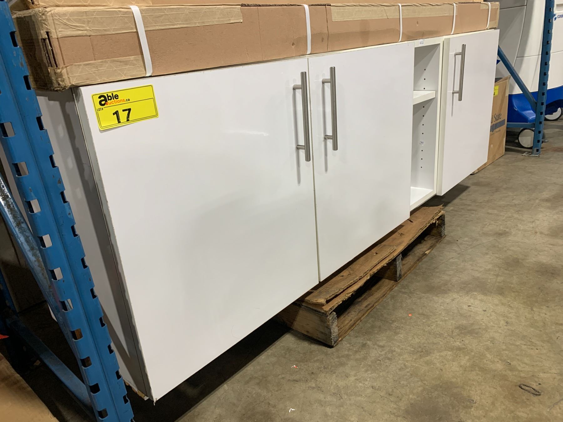 WHITE COMMERCIAL 3 DOOR PRODUCT STORAGE CABINET 70"W X 18"D X 23 1/2"H