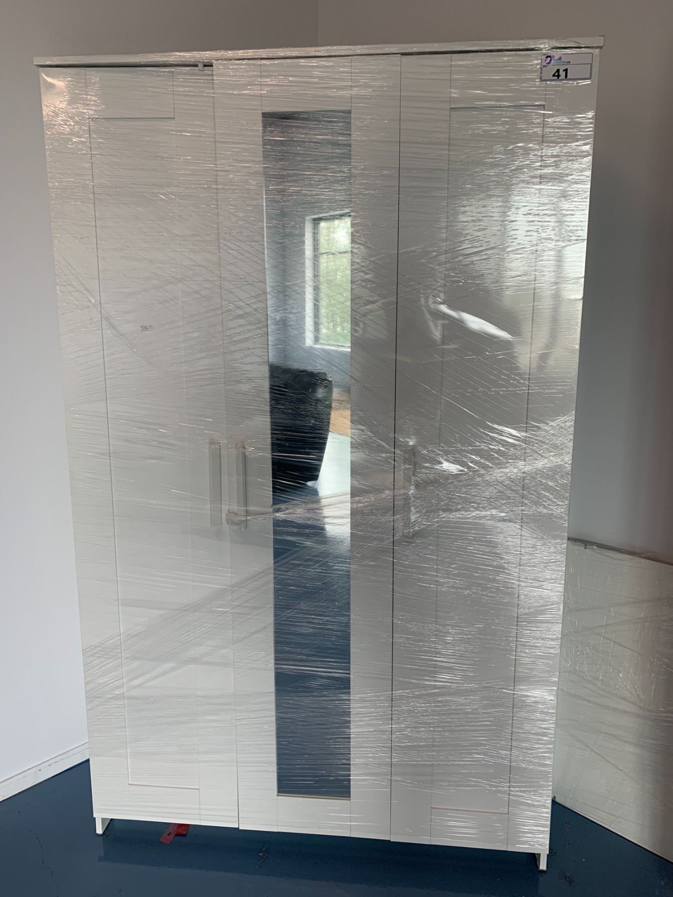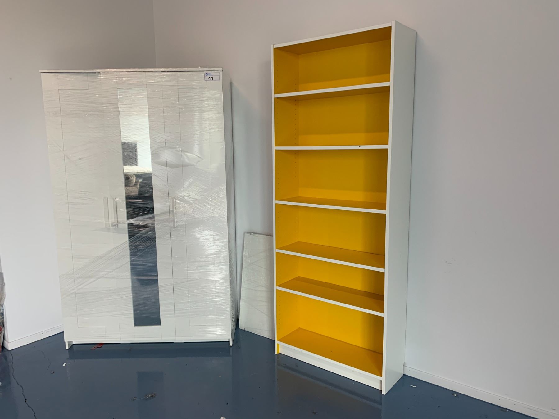 WHITE CONTEMPORARY MIRRORED FRONT WARDROBE & BOOKSHELF UNIT