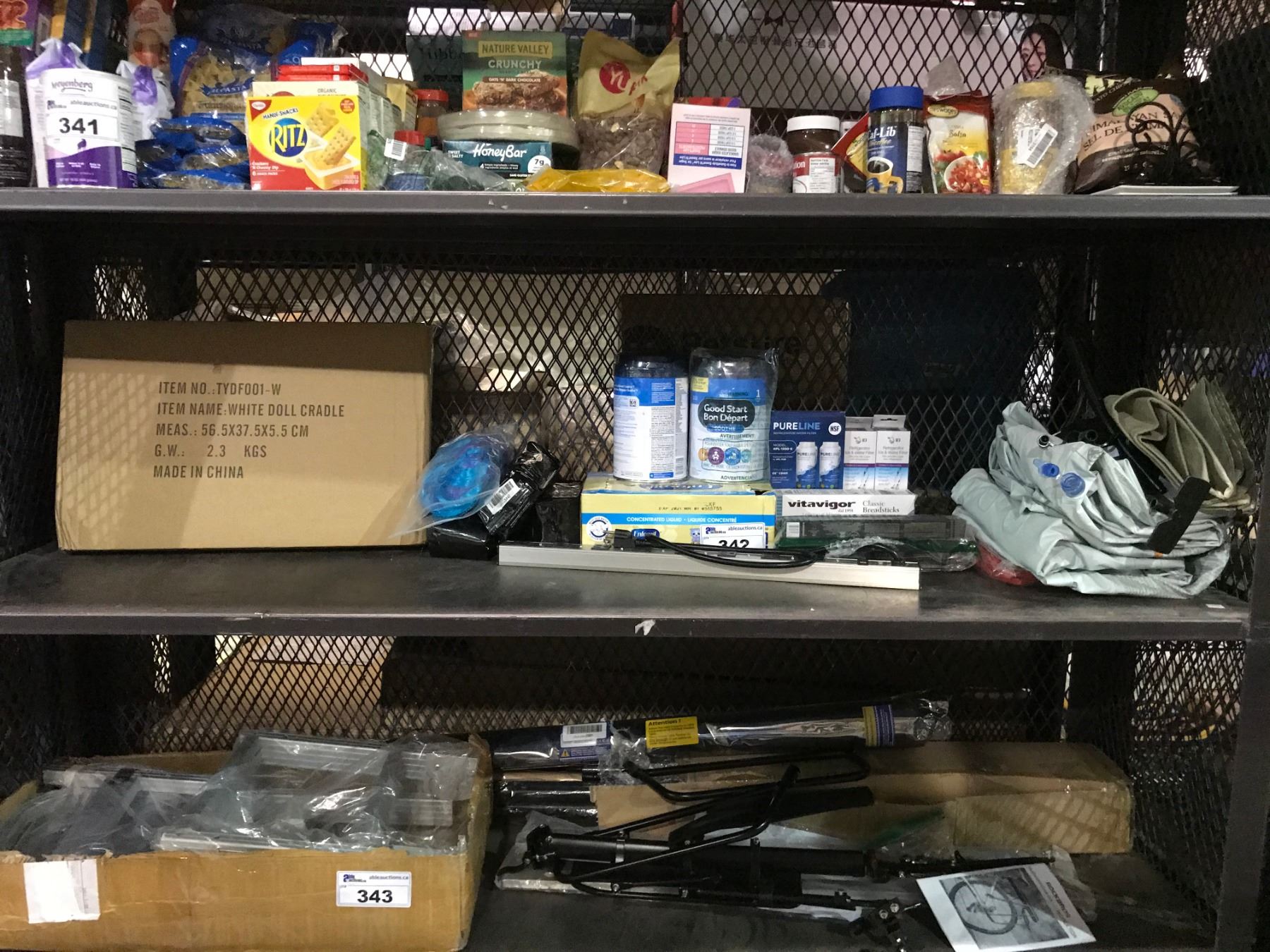 WHITE DOLL CRADLE, NESTLE GOOD START BABY FORMULA, PURELINE REFRIGERATOR WATER FILTERS, ID REFRIGERATOR, INFLATABLE MATTRESS (SIZE UNKNOWN)