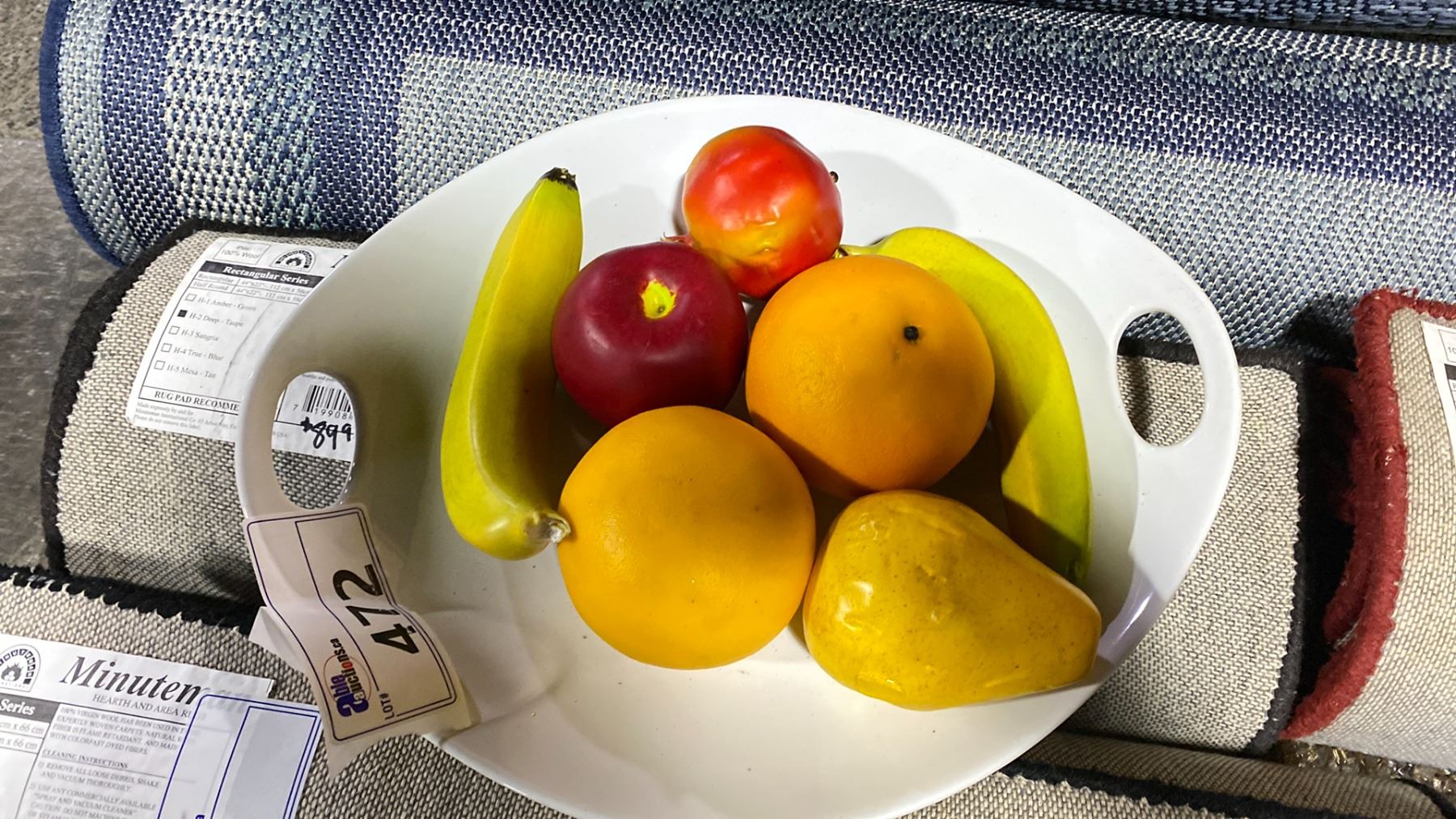 WHITE FRUIT BOWL WITH ARTIFICIAL FRUIT