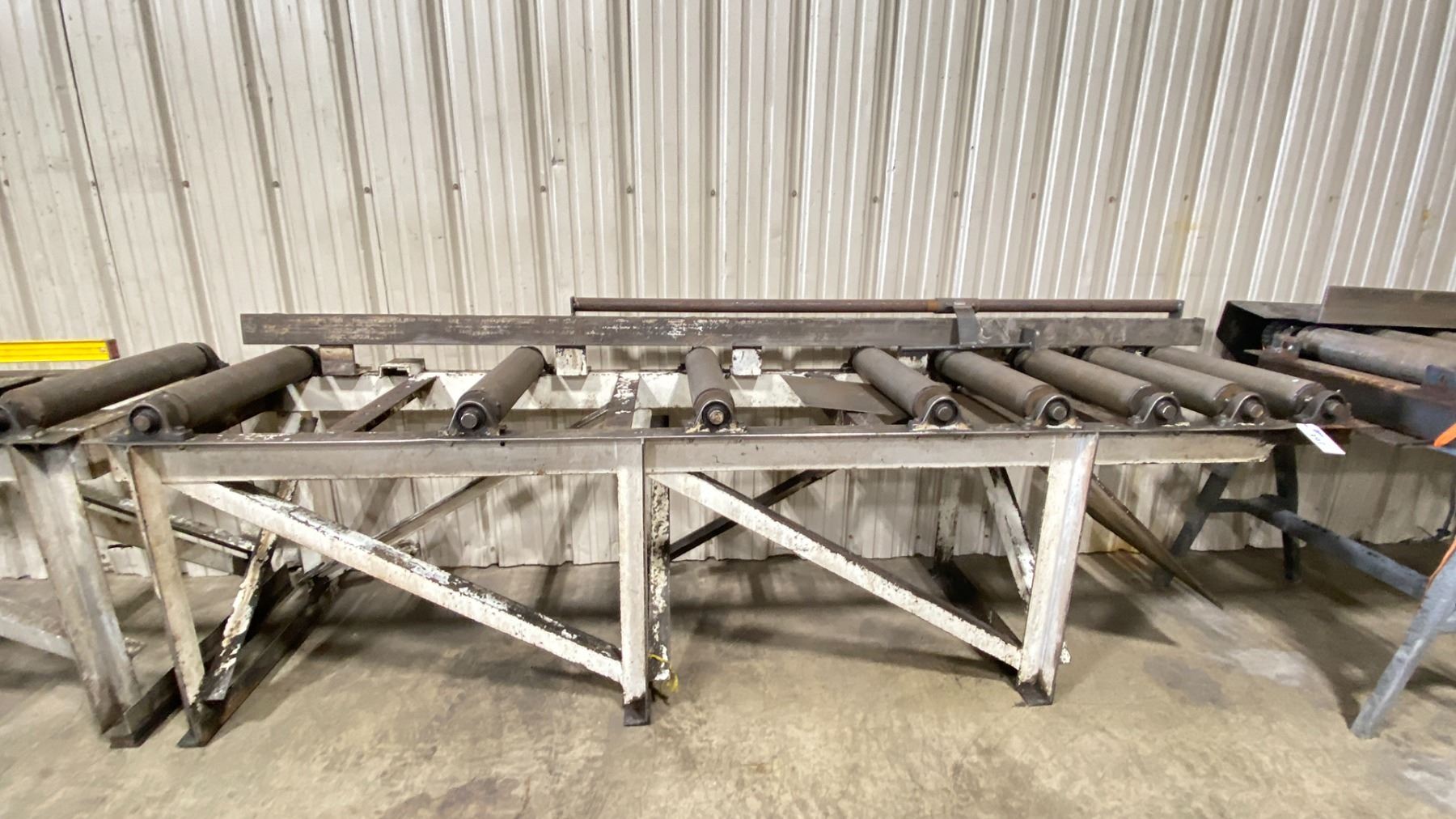 WHITE HEAVY DUTY INDUSTRIAL ROLLER CONVEYOR APPROX 13'W X 2.8'D X 3.9"H