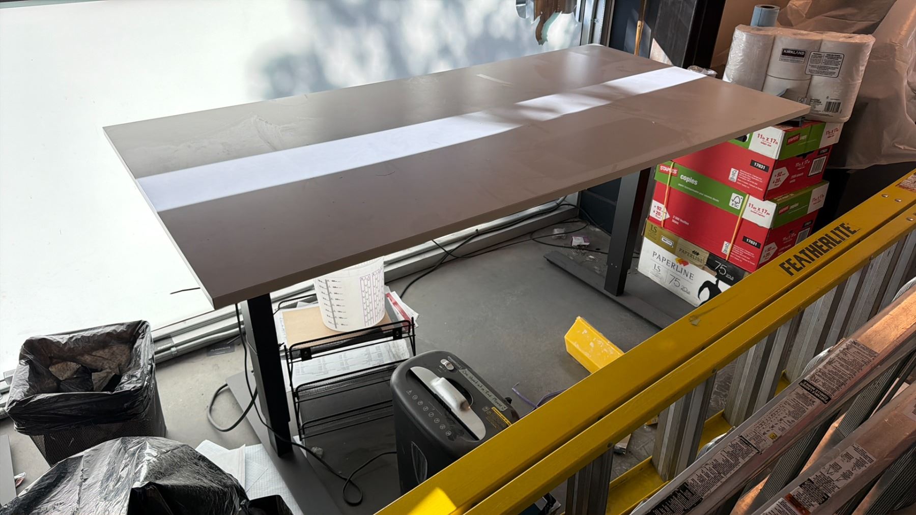WHITE IKEA TROTTEN ADJUSTABLE HEIGHT DESK APPROX 63X32"