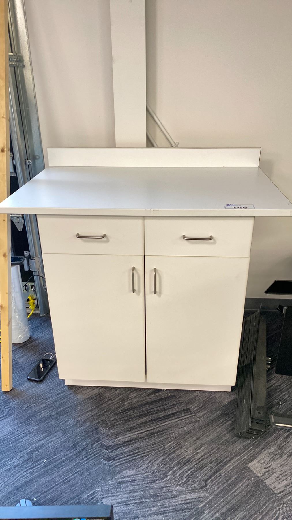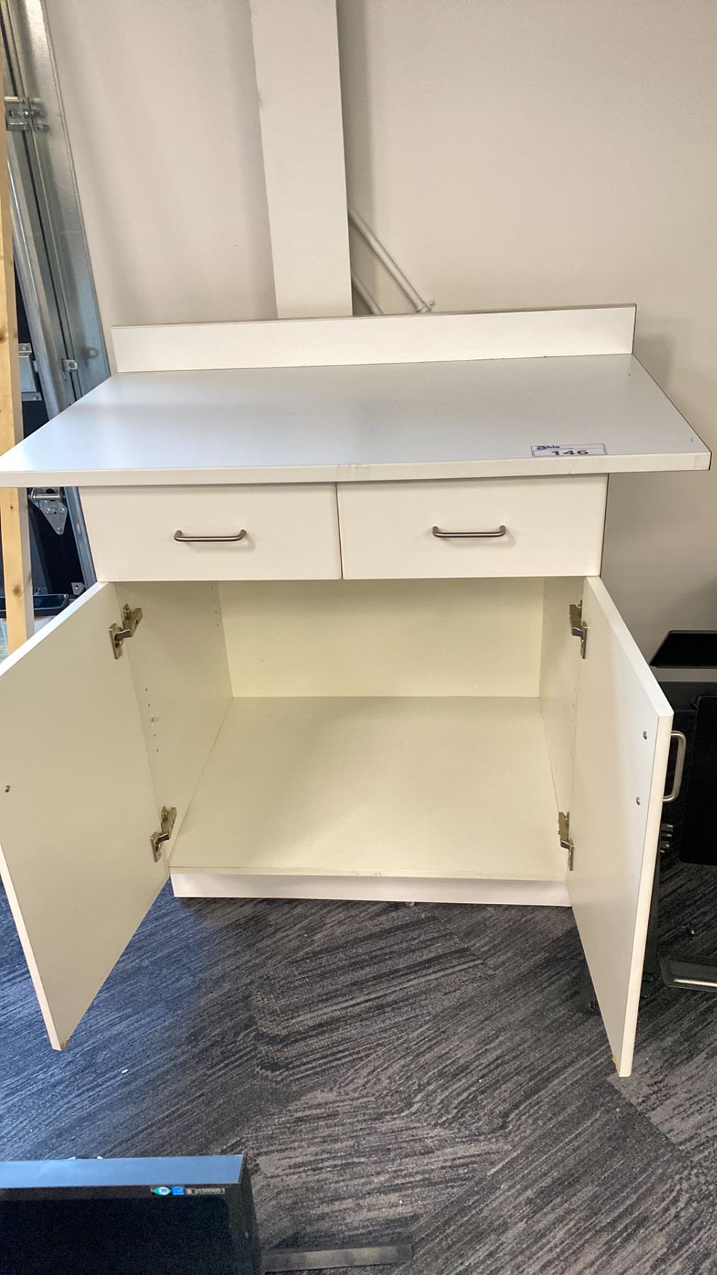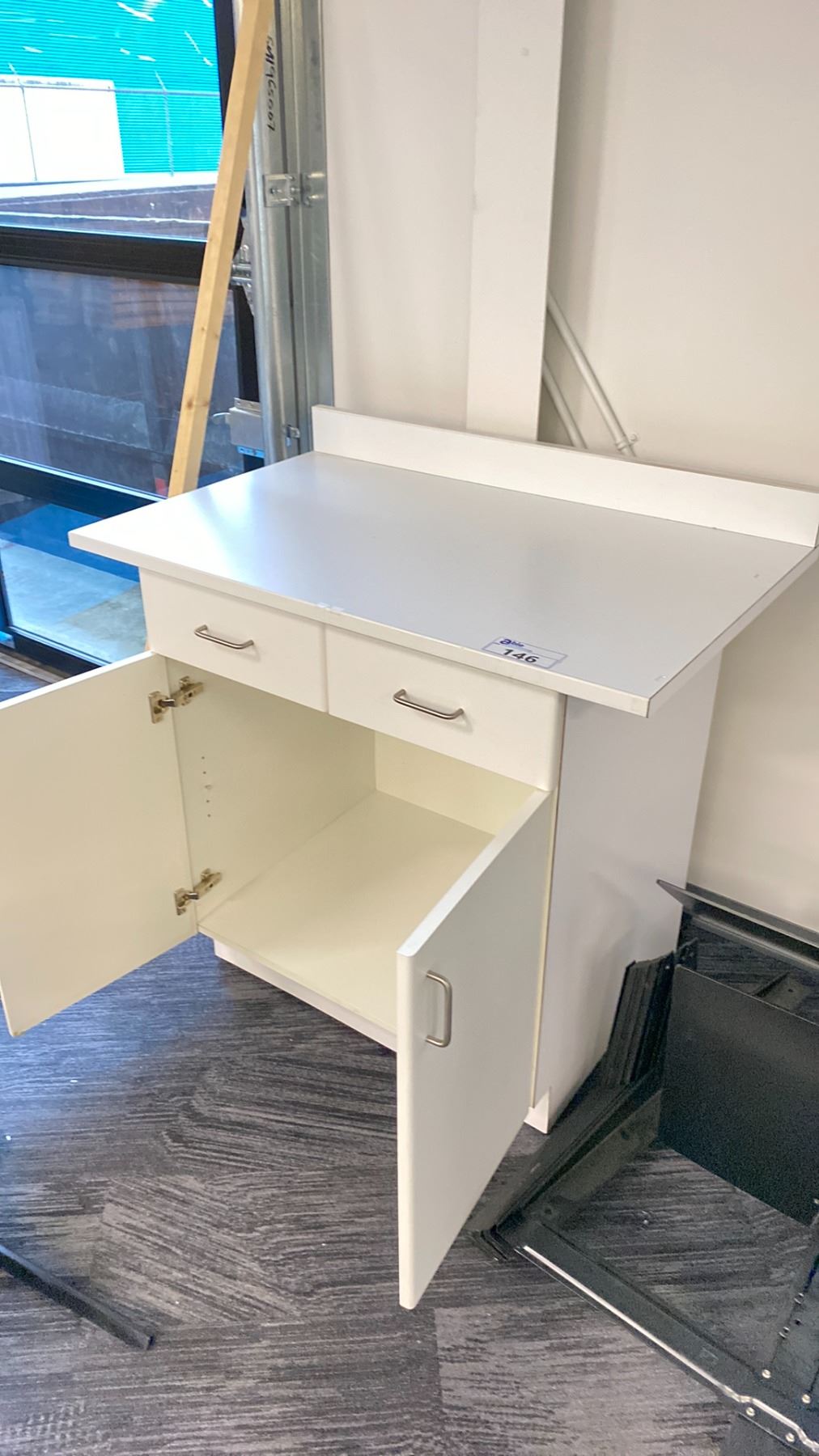 WHITE LAMINATE TOP 2 DRAWER WITH BOTTOM CUPBOARD CABINET