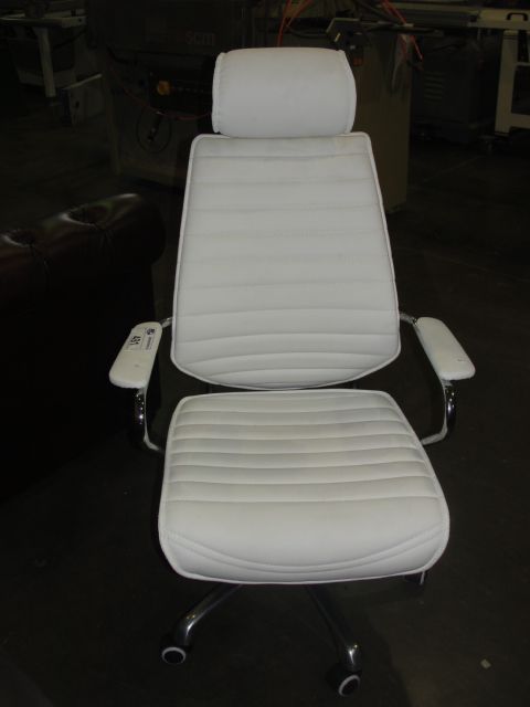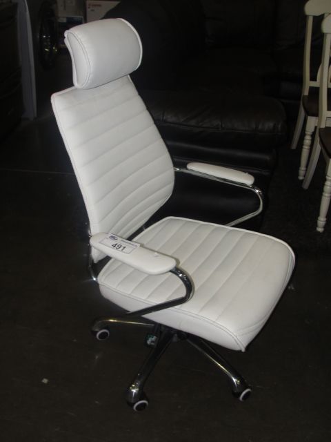 WHITE LEATHER AND CHROME GAS LIFT OFFICE CHAIR
