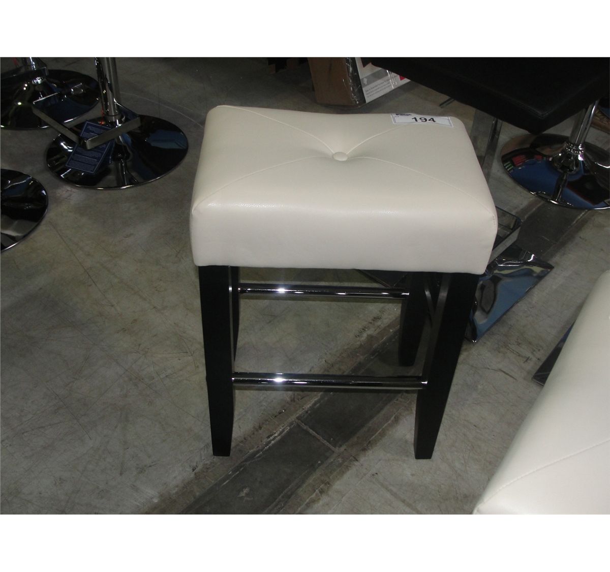 WHITE LEATHER PADDED BARSTOOL WITH CHROME FOOT REST