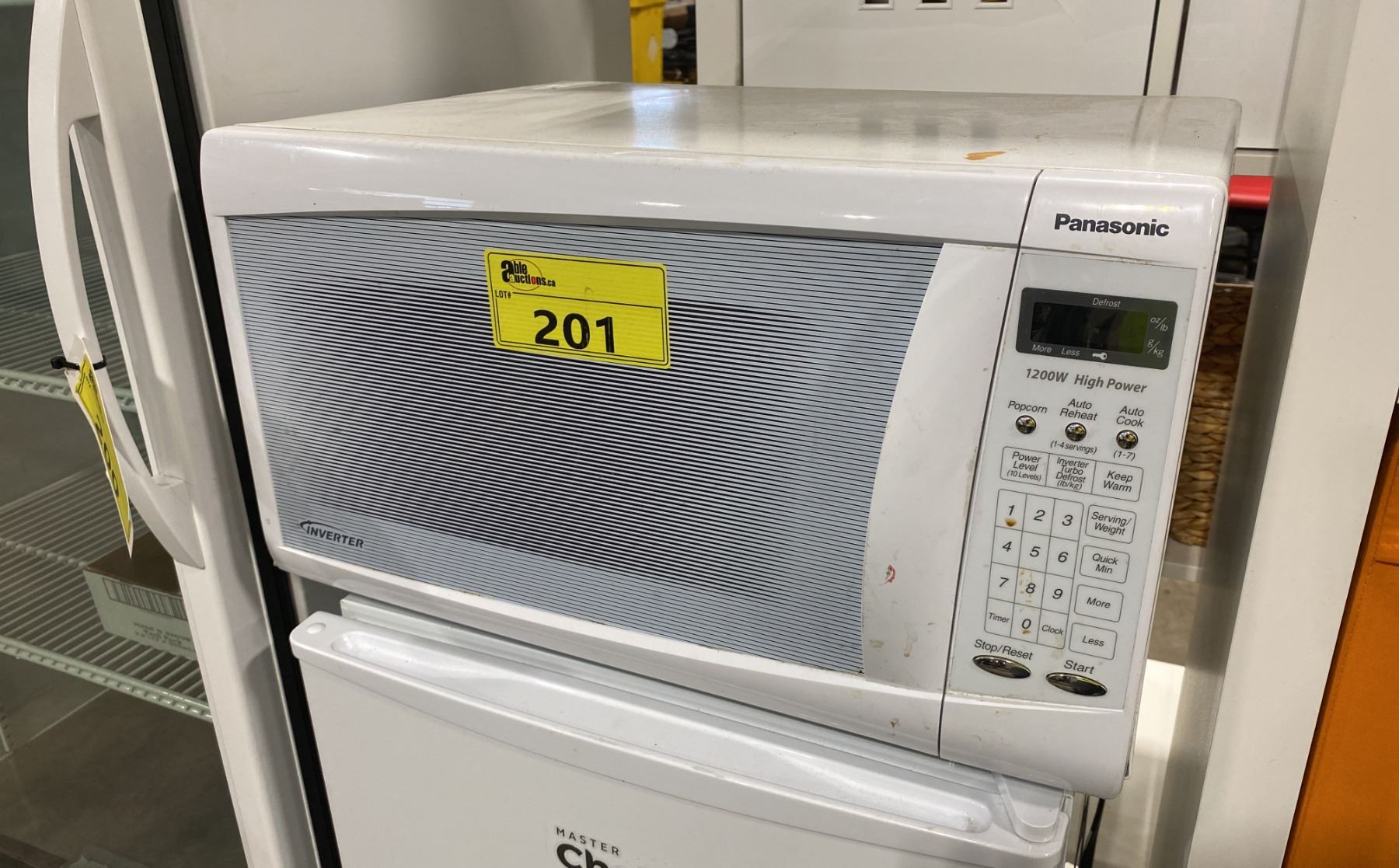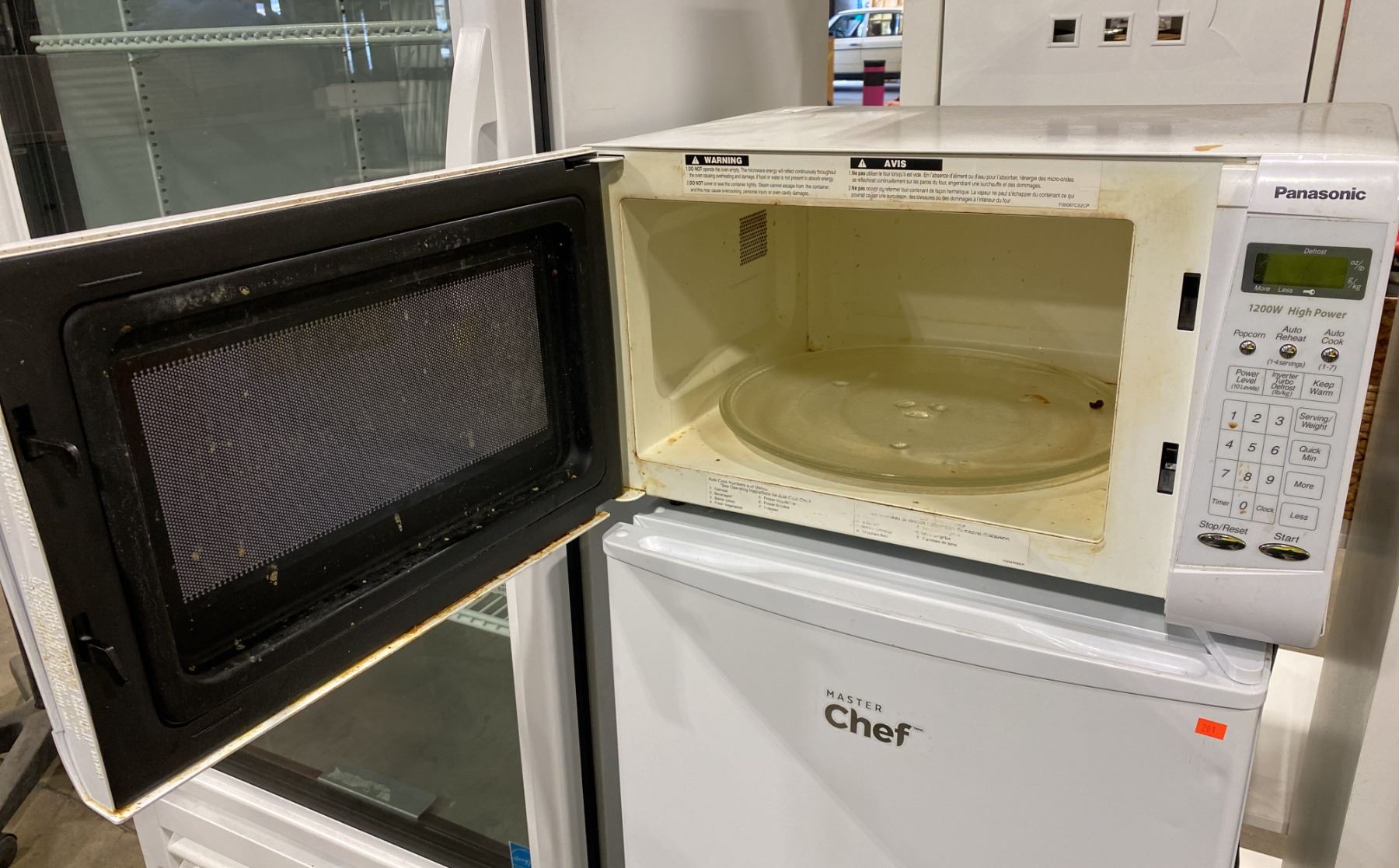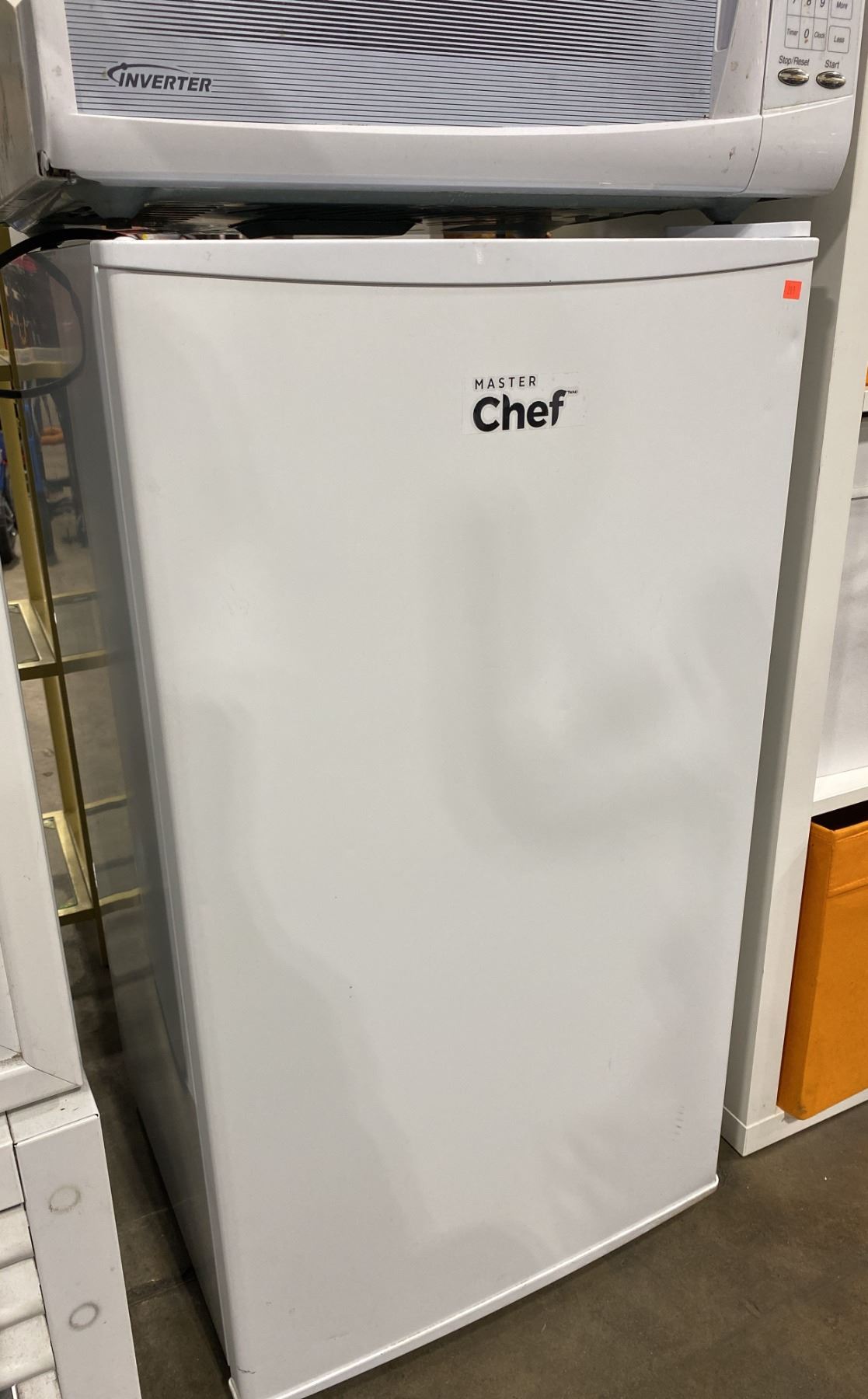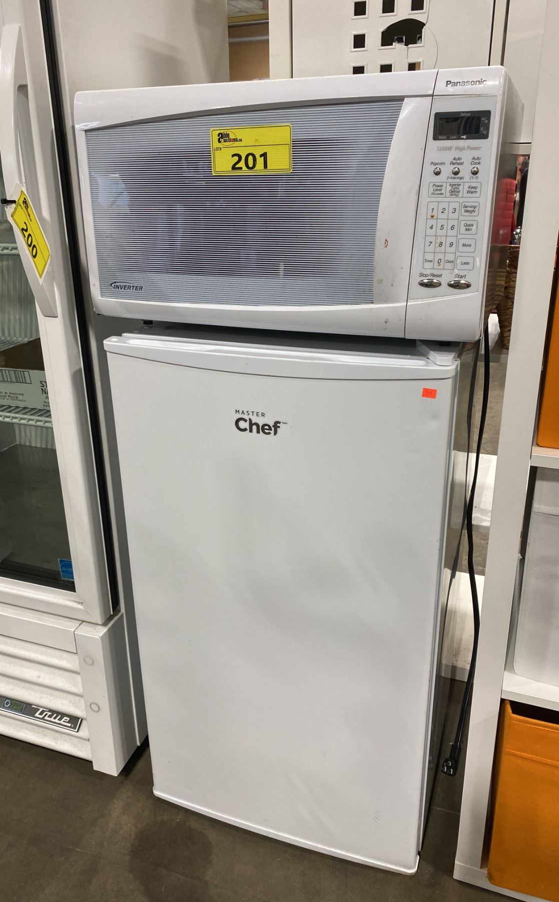 WHITE MASTER CHEF BAR REFRIGERATOR *BROKEN FREEZER COVER * & PANASONIC WHITE MICROWAVE
