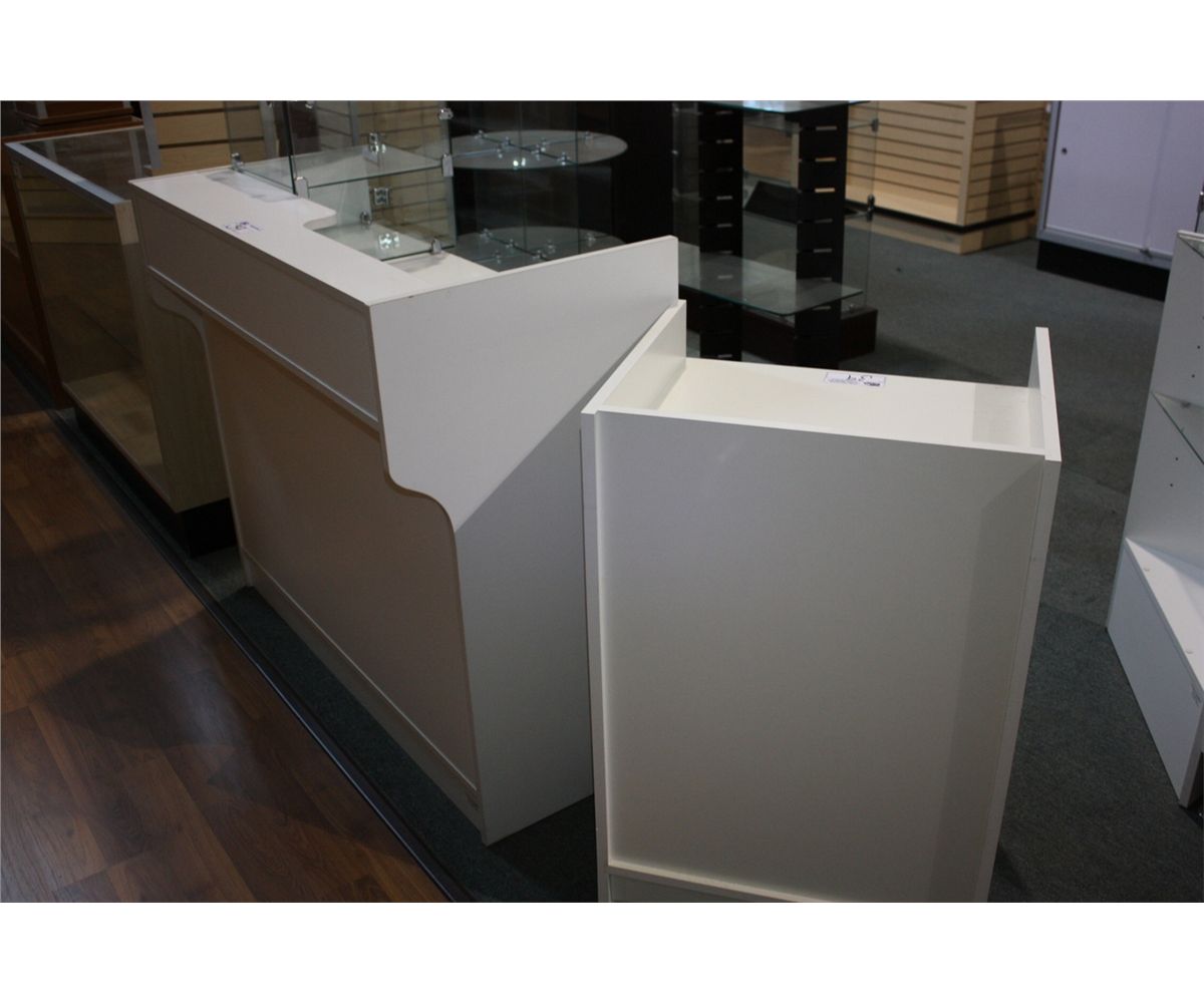 WHITE MELAMINE WITH GLASS DISPLAY 2 PC. RETAIL CASH COUNTER