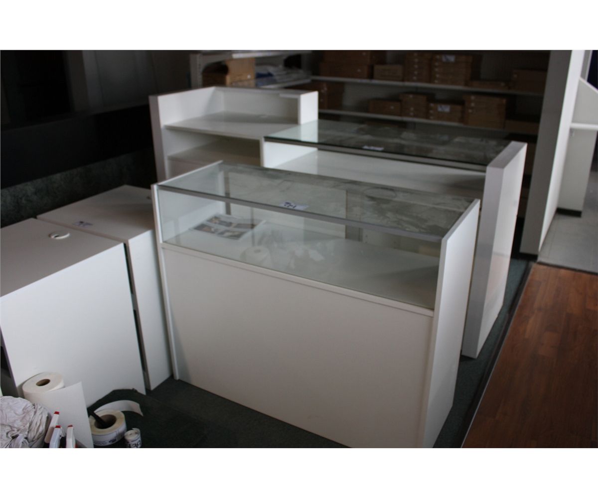 WHITE MELAMINE WITH GLASS DISPLAY 3 PC. COUNTER SUITE