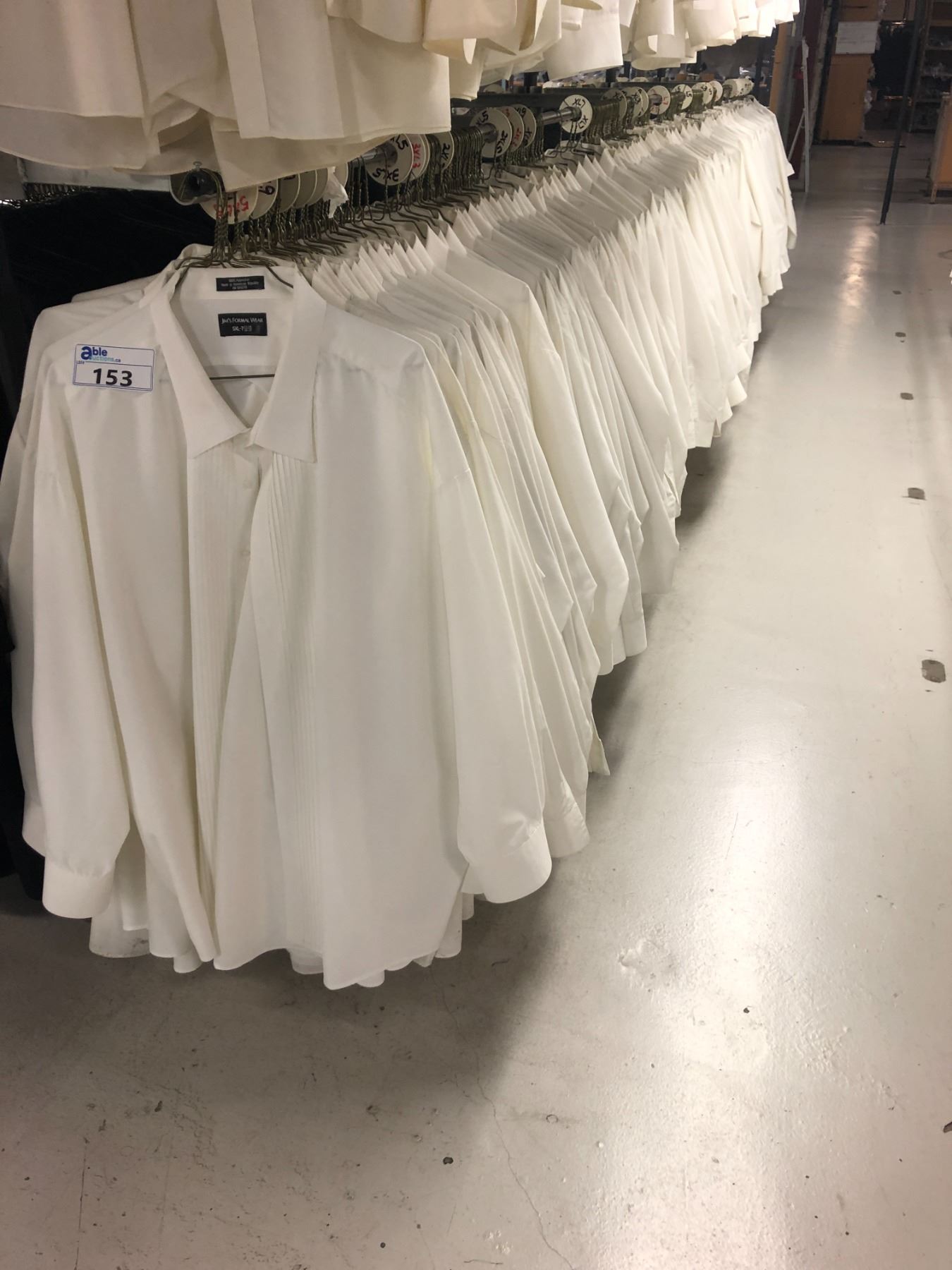 WHITE MEN'S DRESS SHIRTS APPROX 150 MIXED SIZES