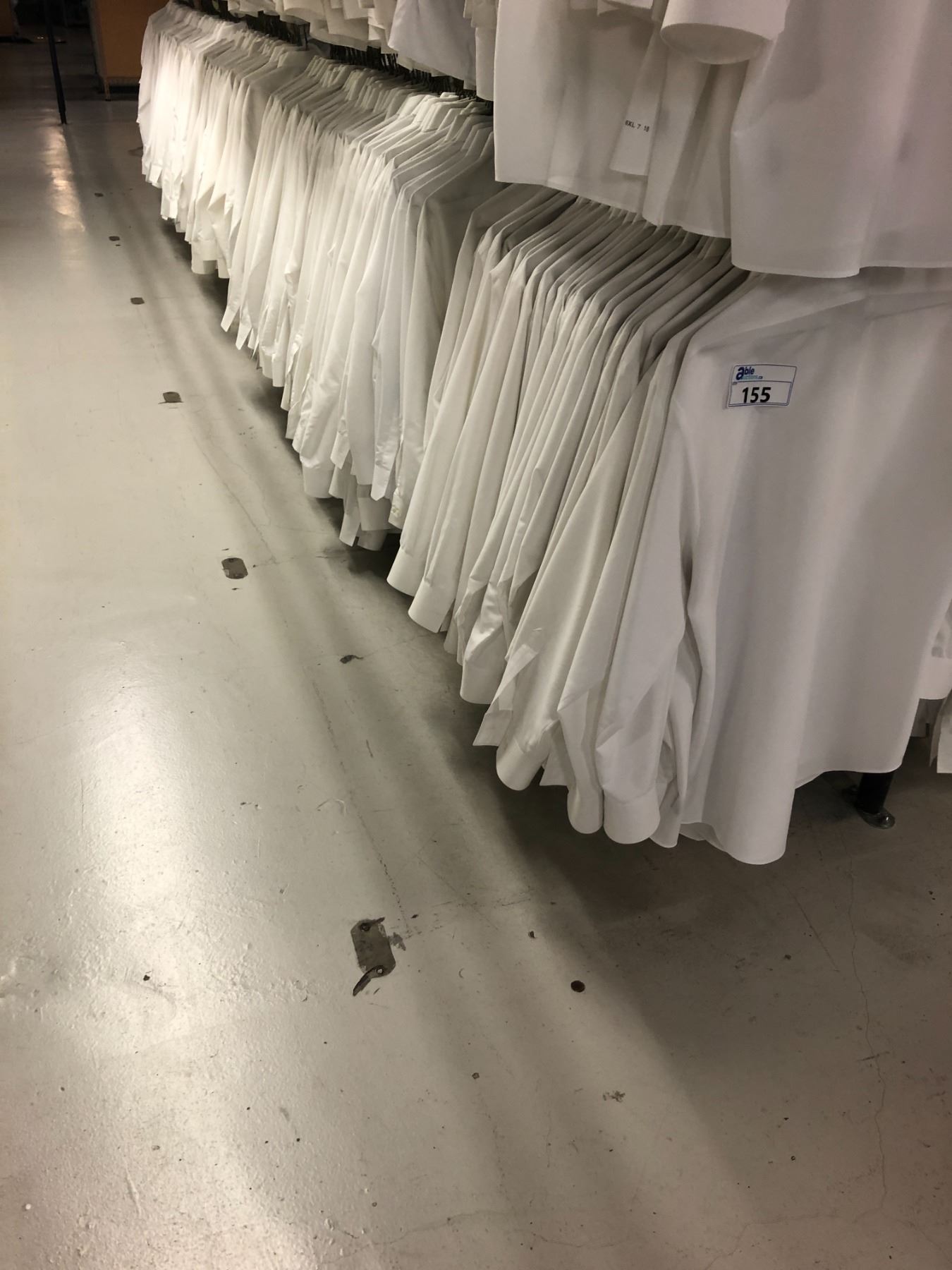 WHITE MEN'S DRESS SHIRTS APPROX 150 MIXED SIZES