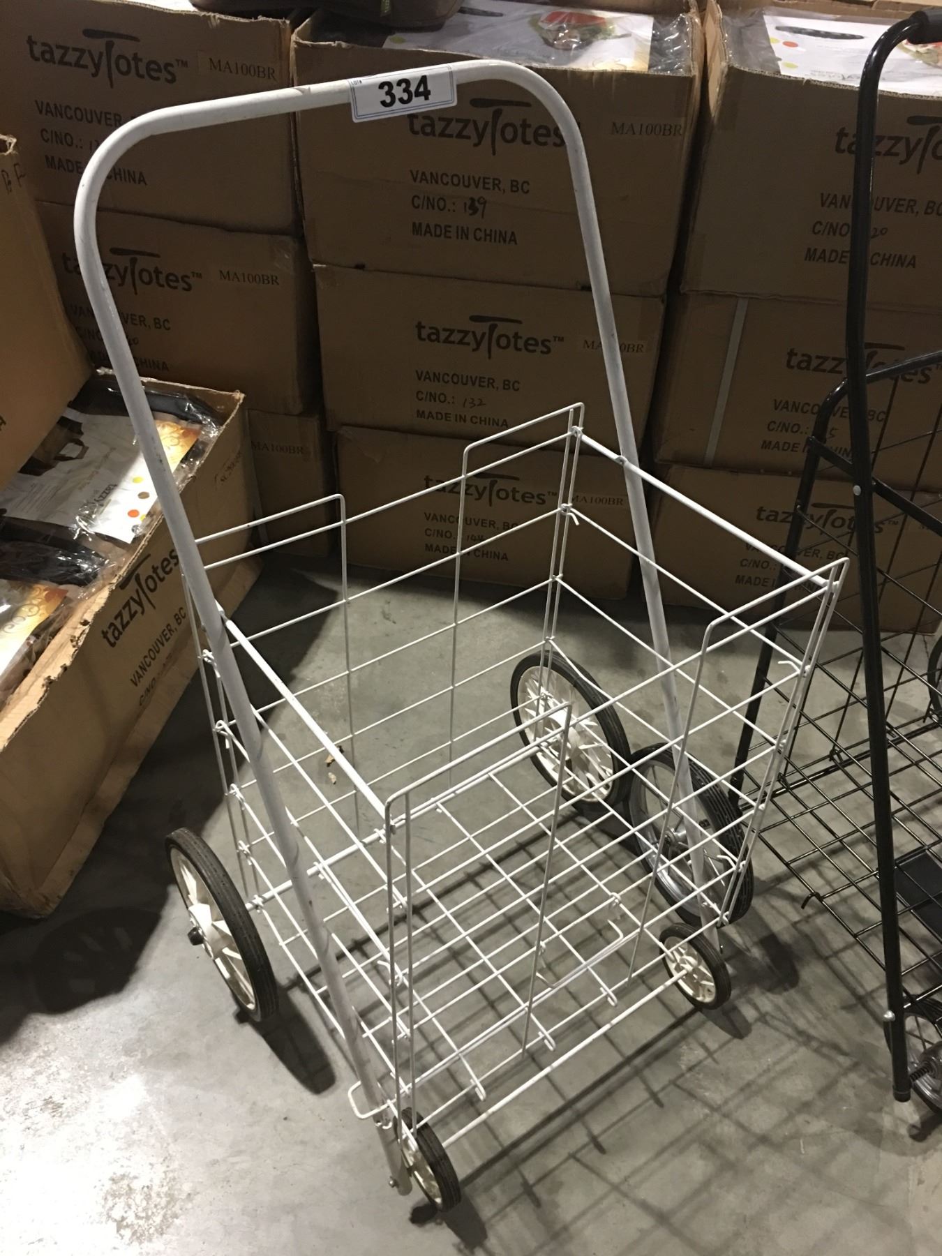 WHITE METAL 4-WHEEL FOLDING SHOPPING CART