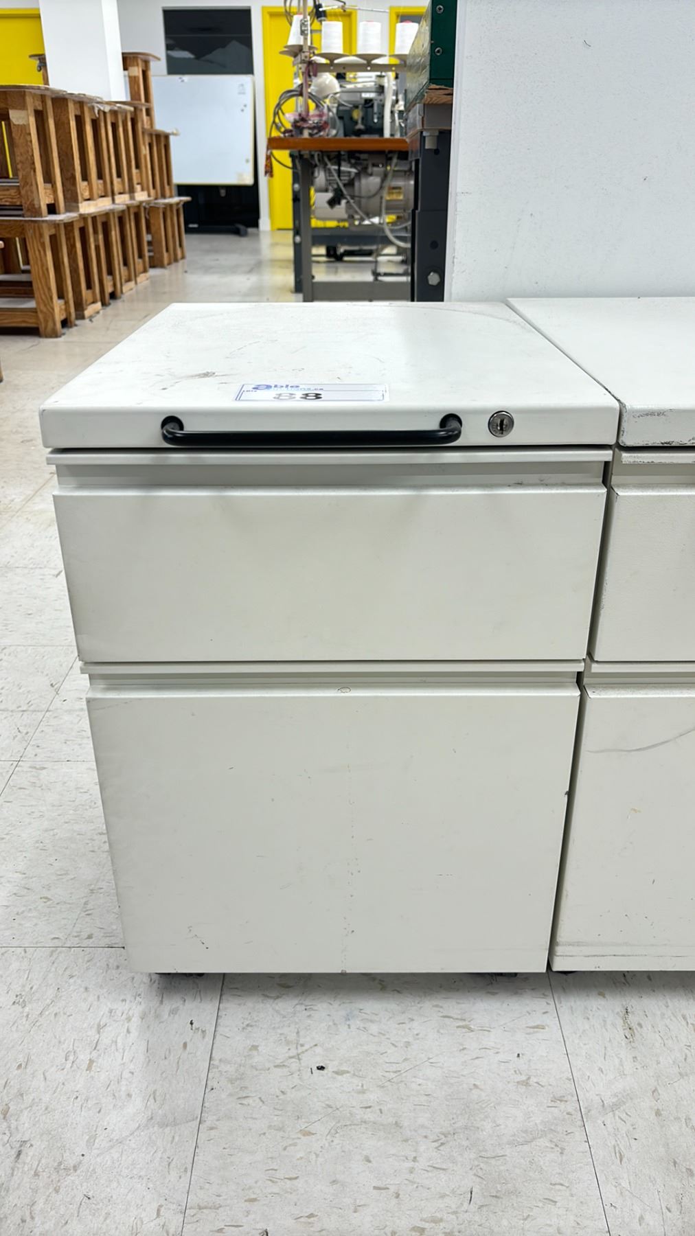 WHITE MOBILE METAL TWO DRAWER PEDESTAL * NO KEY *
