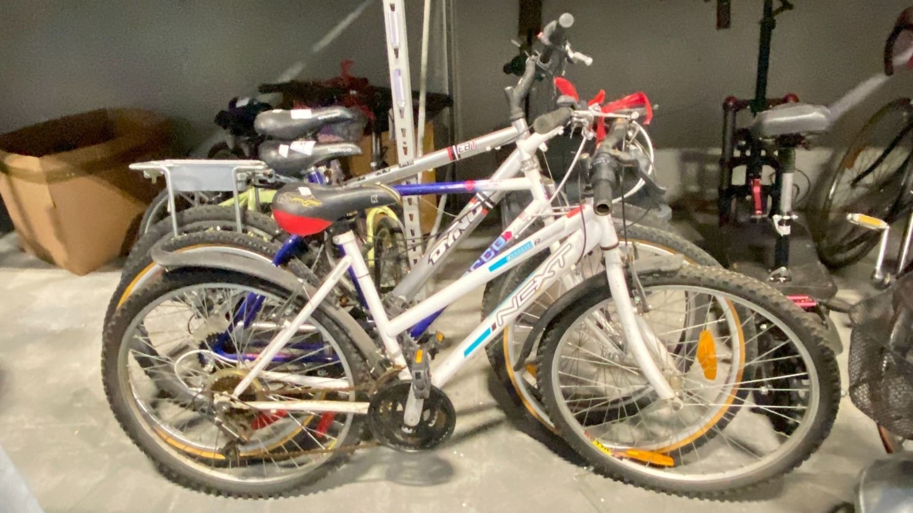 WHITE NEXT CHALLENGE R 18-SPEED MOUNTAIN BIKE,BLUE/WHITE NORCO MOUNTAIN BIKE AND DYNO EB1 ELECTRIC BIKE NO CHARGER