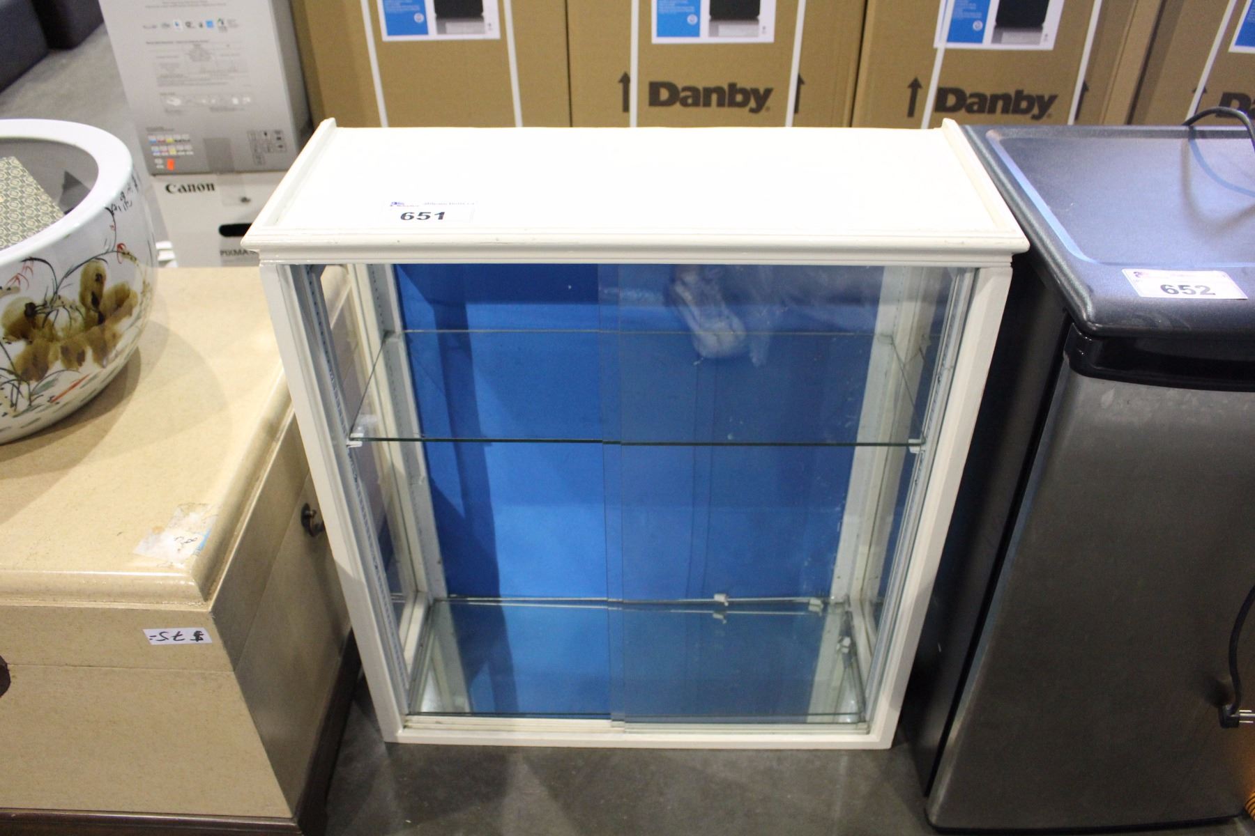 WHITE PAINTED WOOD CABINET WITH GLASS FRONT