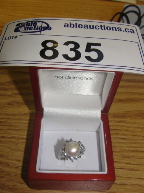 WHITE PEARL AND CRYSTAL COCKTAIL RING
