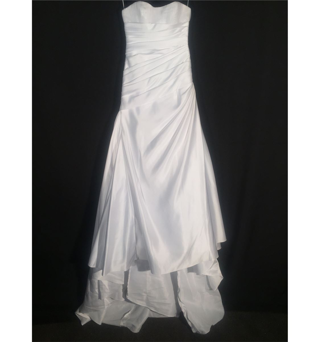 WHITE PLEATED TOP WEDDING DRESS W/ TRAIN, SIZE 8