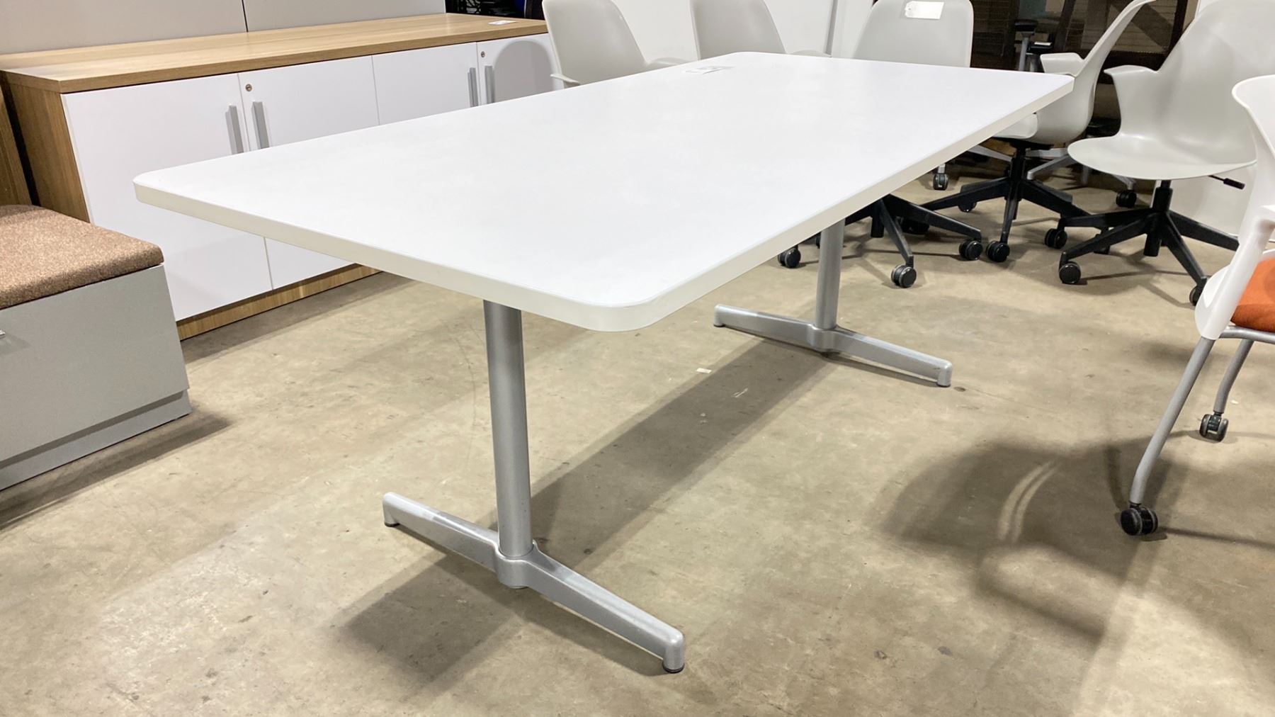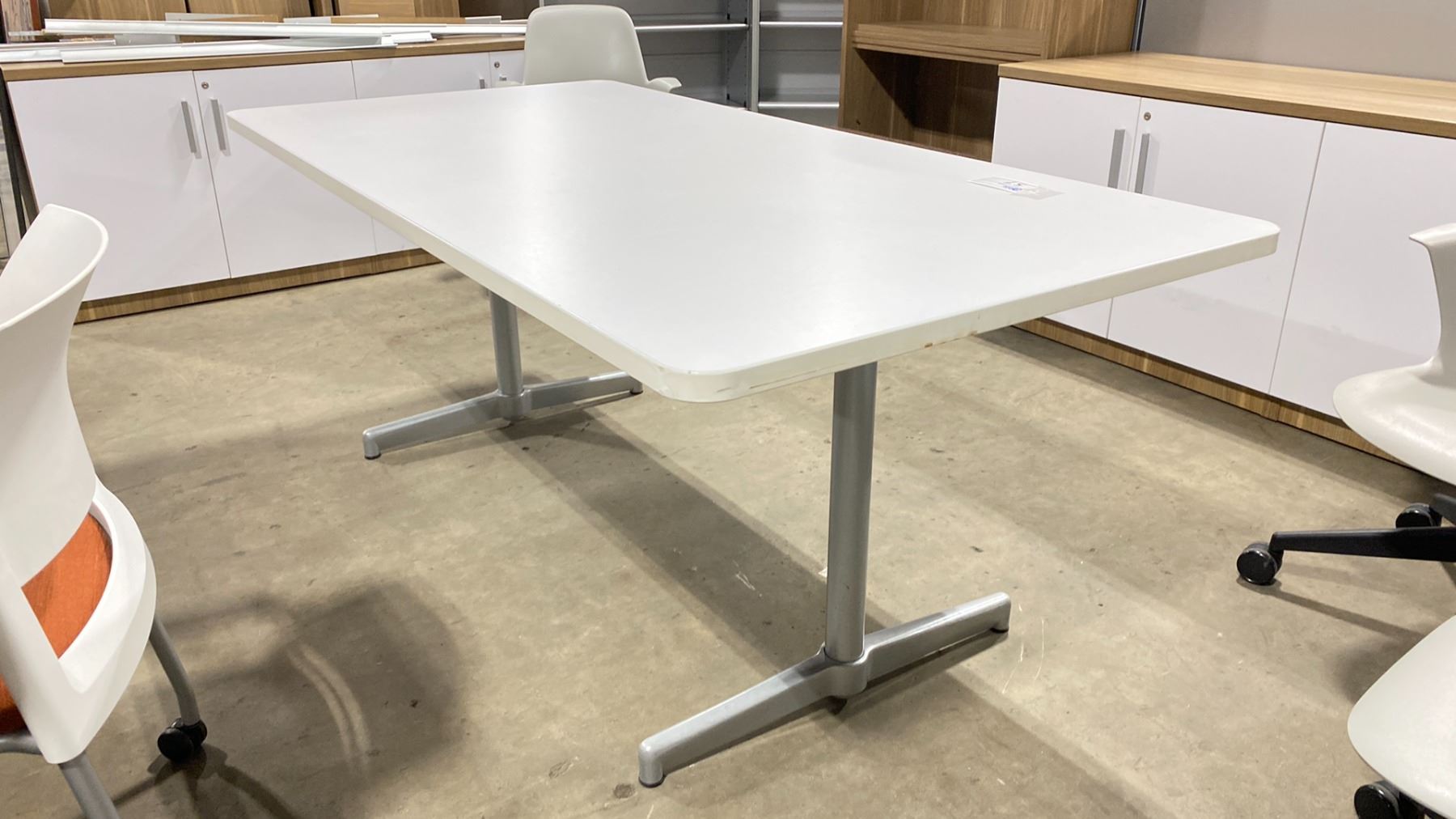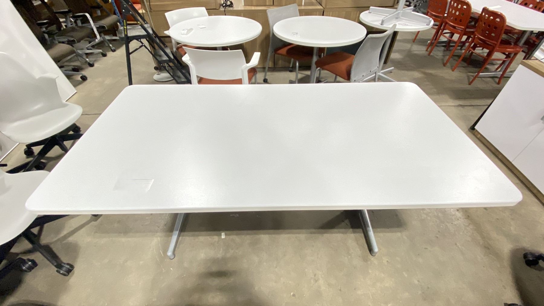 WHITE RECTANGULAR 5'W X 36"D X 28 1/2"H CONFERENCE / BOARDROOM TABLE WITH GREY LEGS