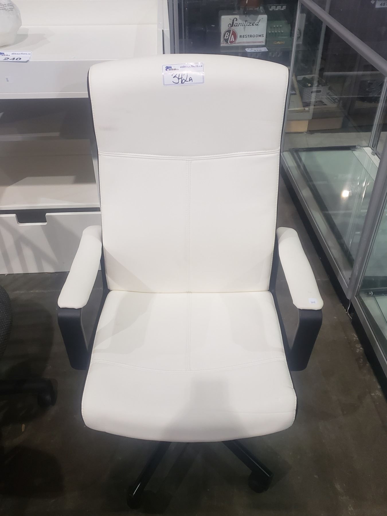 WHITE ROLLING LEATHER OFFICE CHAIR