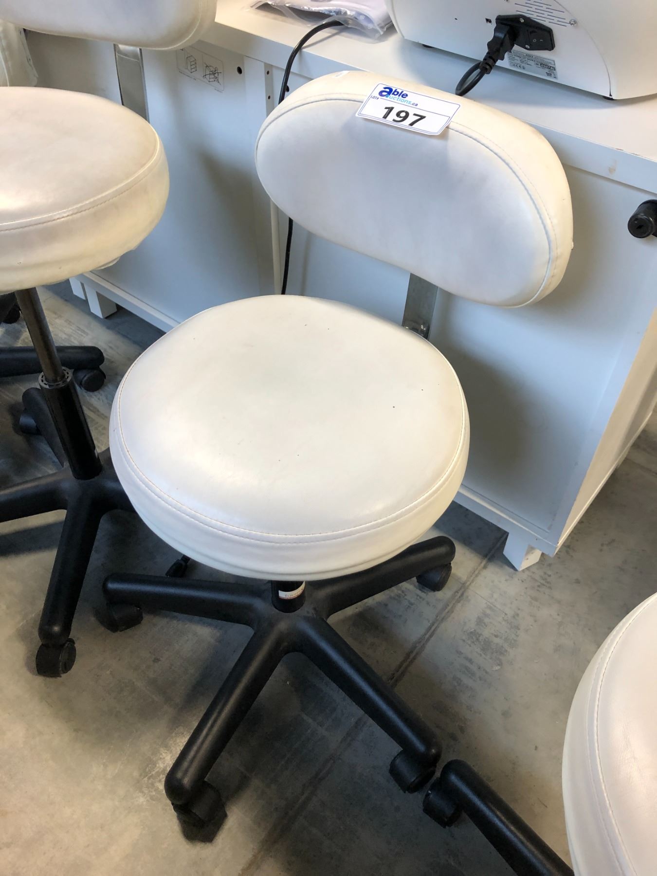 WHITE ROUND HEIGHT ADJUSTABLE STOOL COMES WITH BACK REST