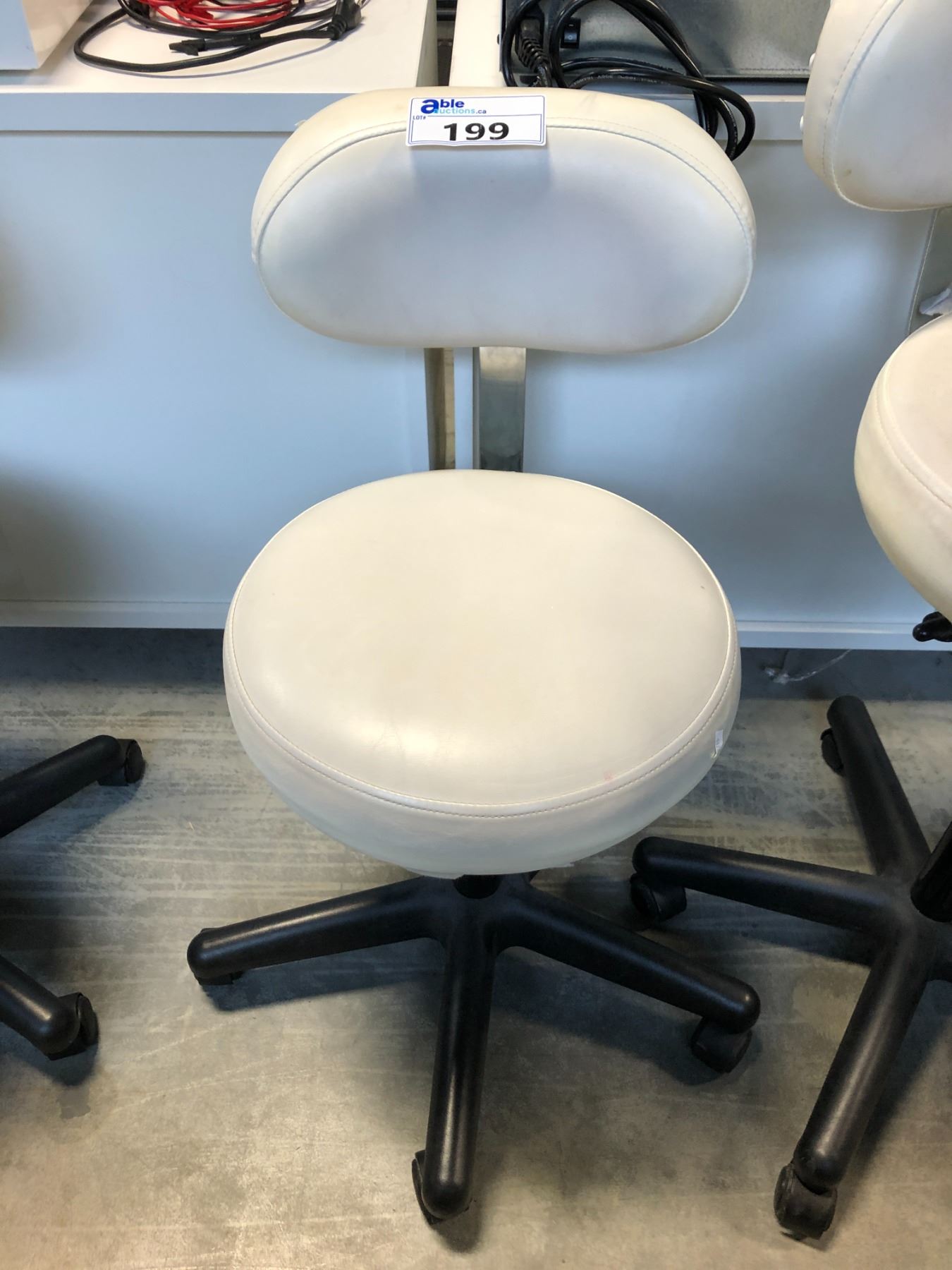 WHITE ROUND HEIGHT ADJUSTABLE STOOL COMES WITH BACK REST
