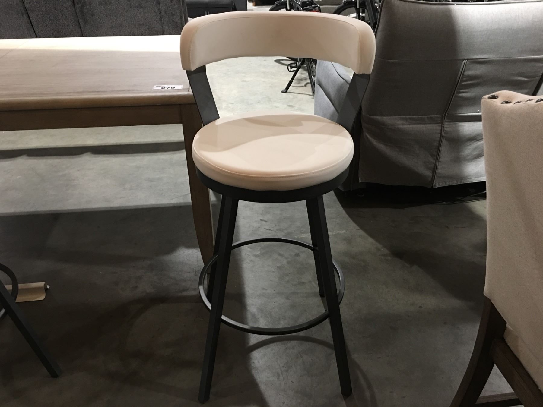 WHITE SWIVEL STOOL WITH METAL BASE