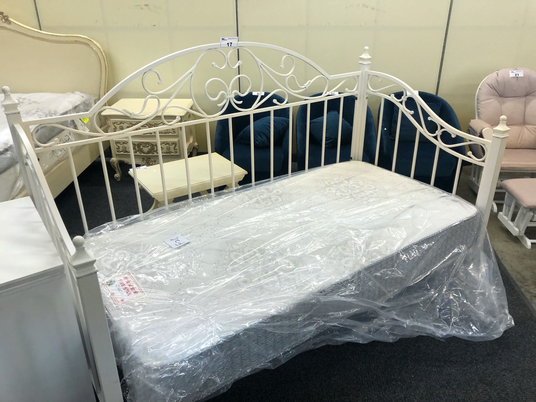 WHITE TRADITIONAL STYLE METAL FRAME DAY BED, MATTRESS INCLUDED