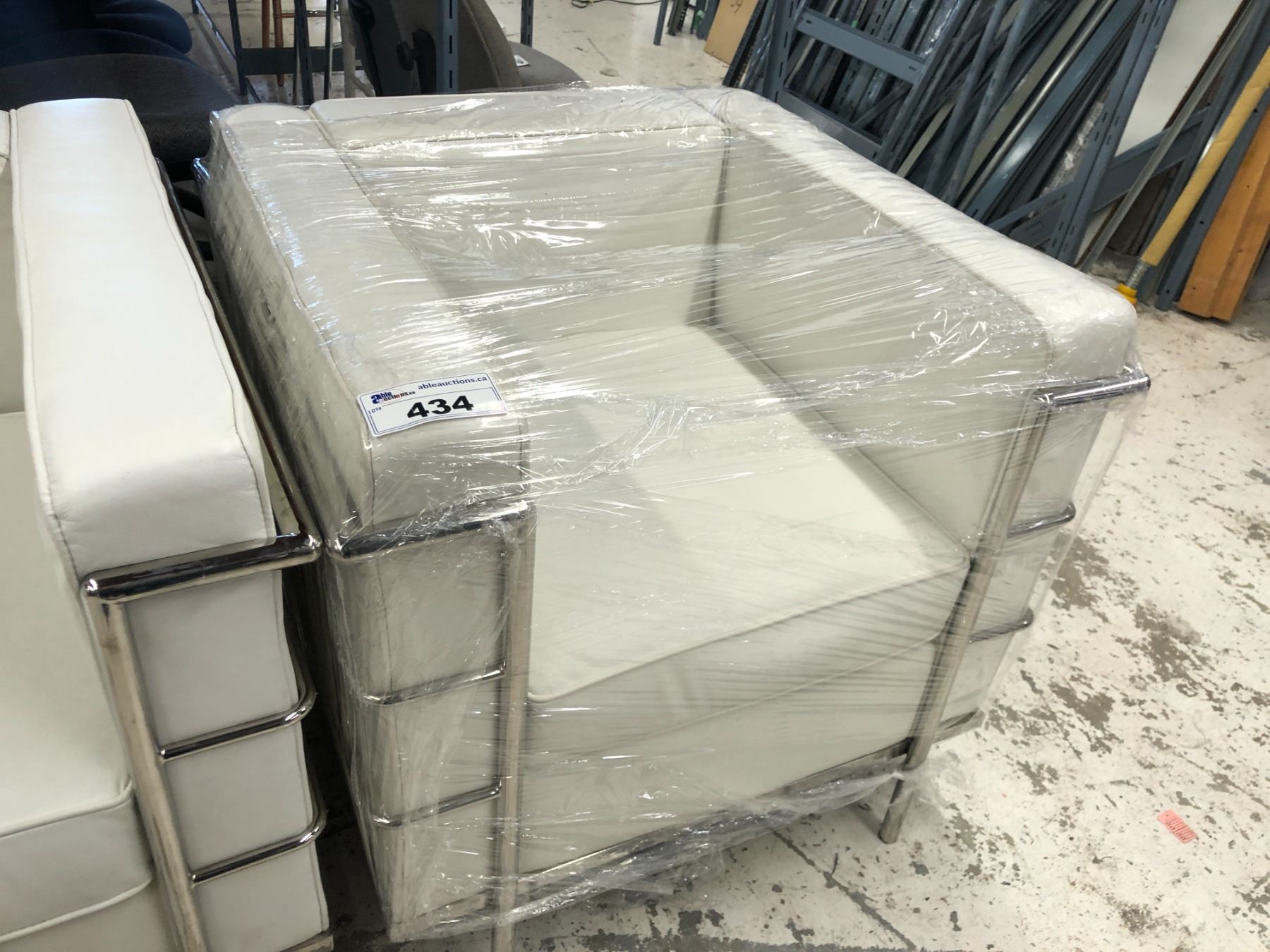WHITE TUFTED CHROME FRAME MODERN DESIGN ACCENT CHAIR
