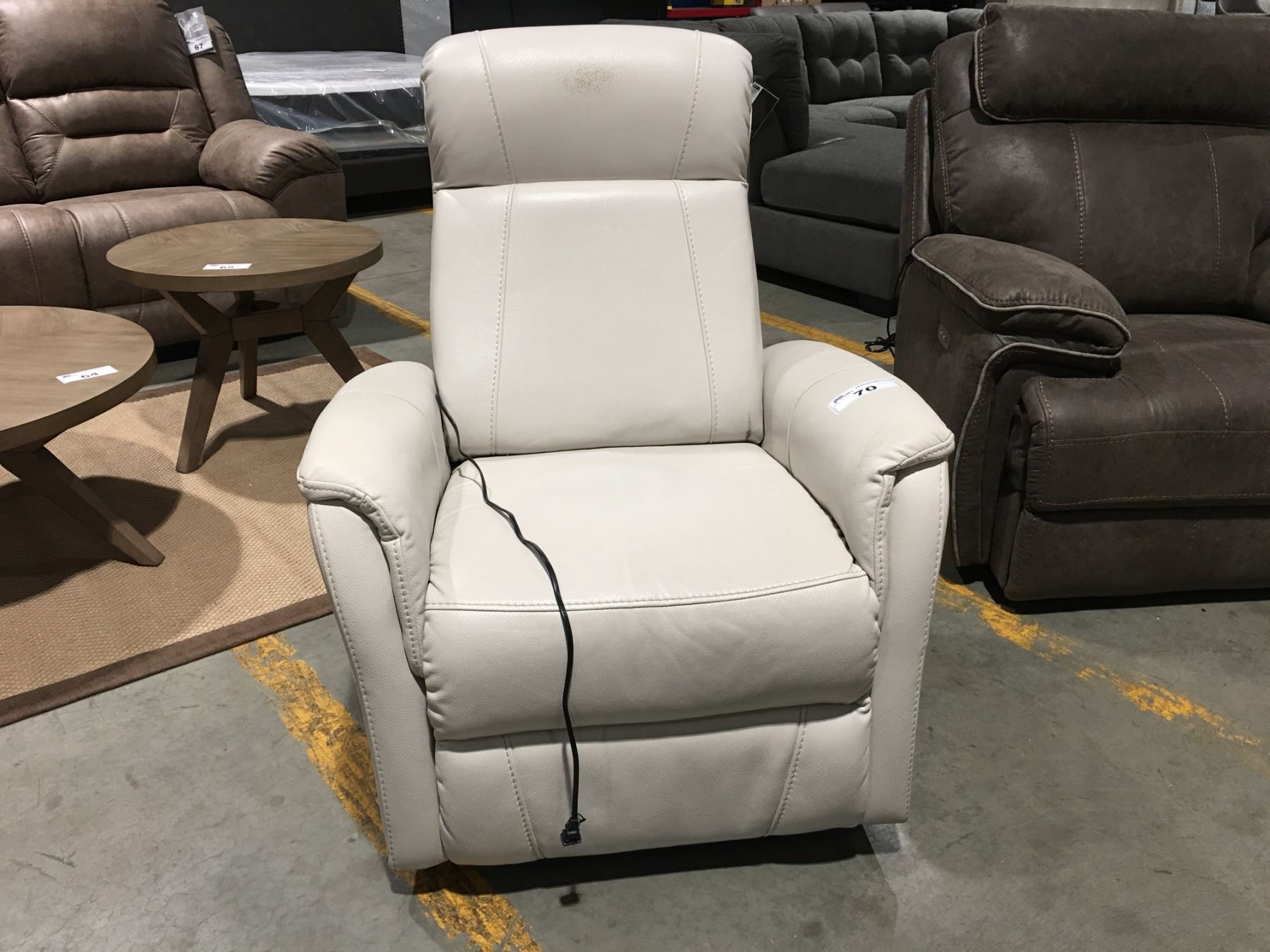 WHITE UPHOLSTERED RECLINING LOUNGE CHAIR (SOME WEAR PRESENT)