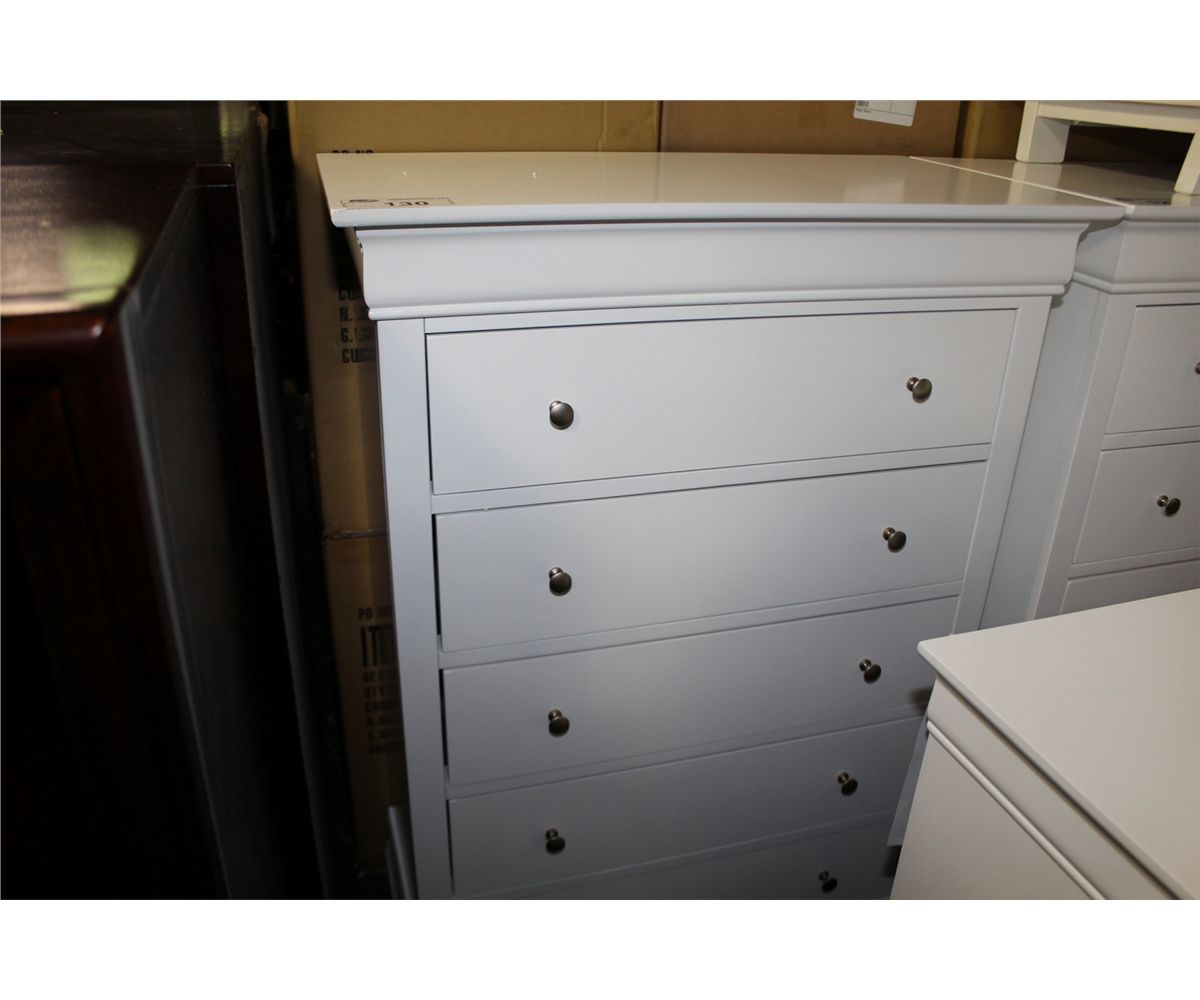 WHITE UPRIGHT 5 DRAWER DRESSER (S3)