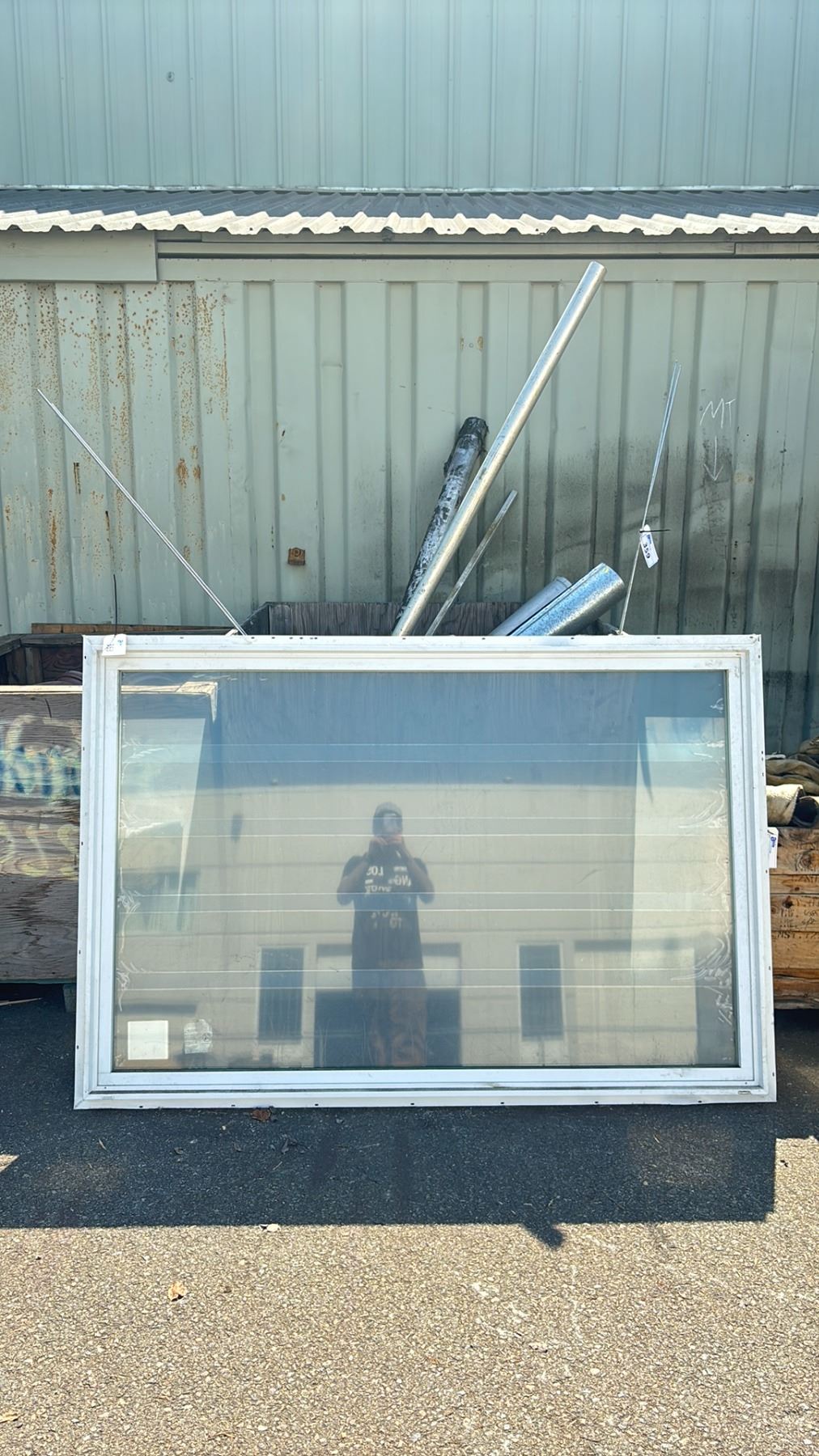 WHITE VINYL FRAMED DOUBLE GLAZED GLASS WINDOWS - APPROX. 74"W X 51"H & 51.5"W X 50.5"H