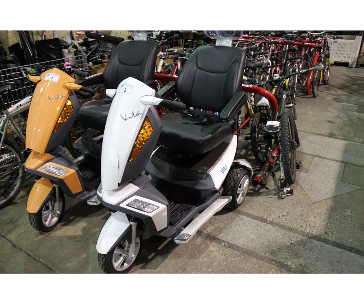 WHITE VITA 3 WHEELED MOBILITY SCOOTER ( NO CHARGER AND SOME DAMAGE TO FRONT PANEL )