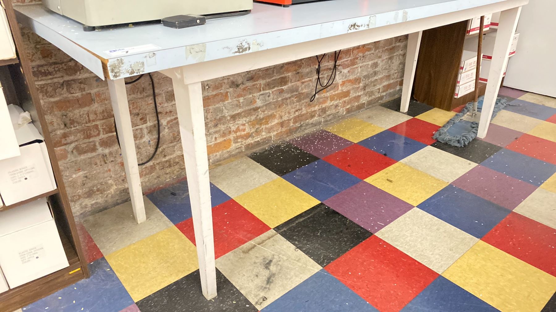 WHITE WOOD 96"W X 36"D X 36"H EQUIPMENT TABLE