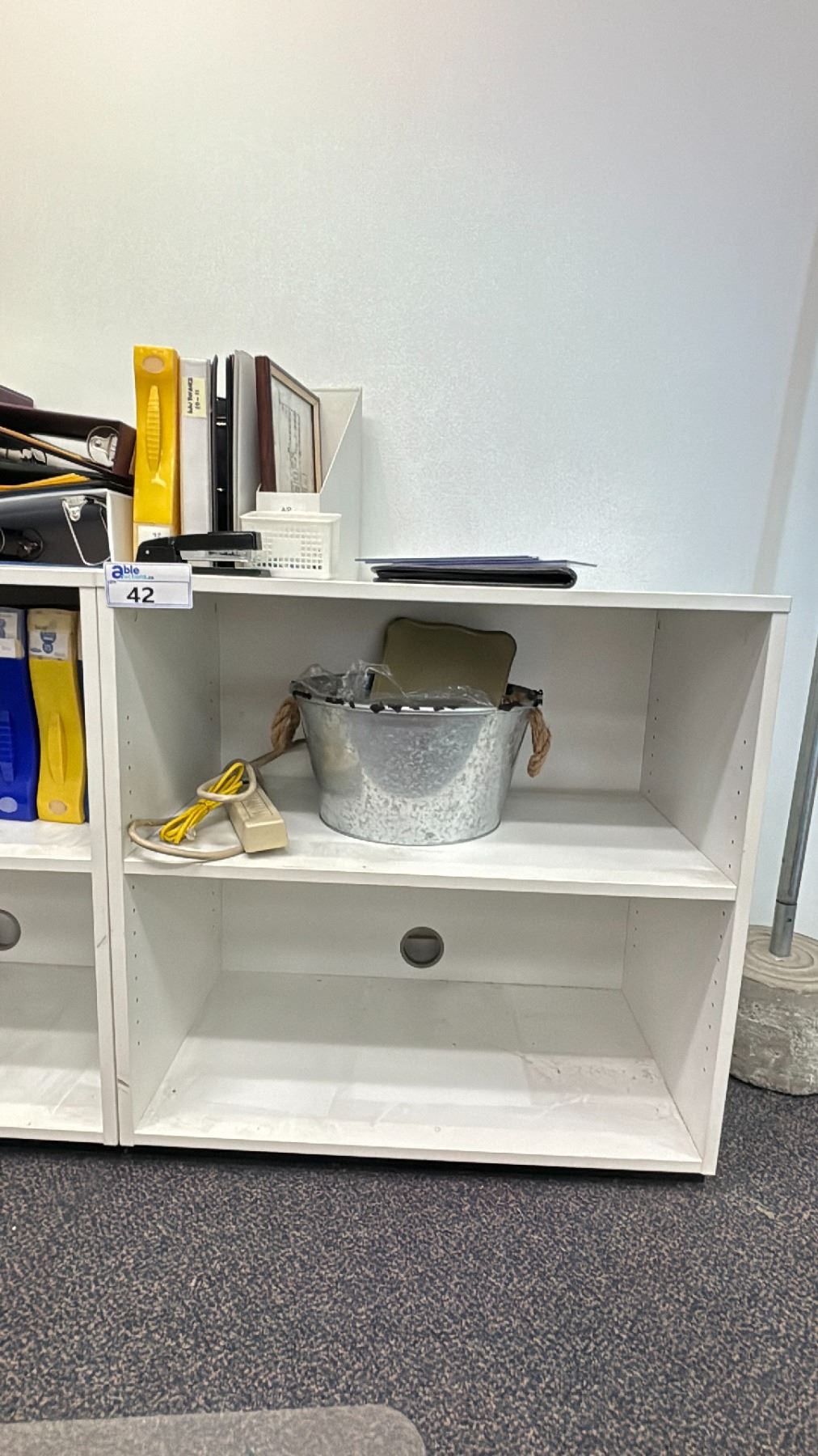 WHITE WOODEN TWO TIER STORAGE SHELF ( 31.5"W X 18"D X 31.5"H ) * CONTENTS NOT INCLUDED *