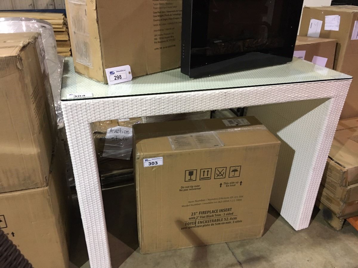 WHITE WOVEN BAR HEIGHT PATIO TABLE WITH GLASS TOP