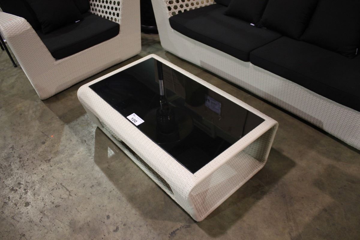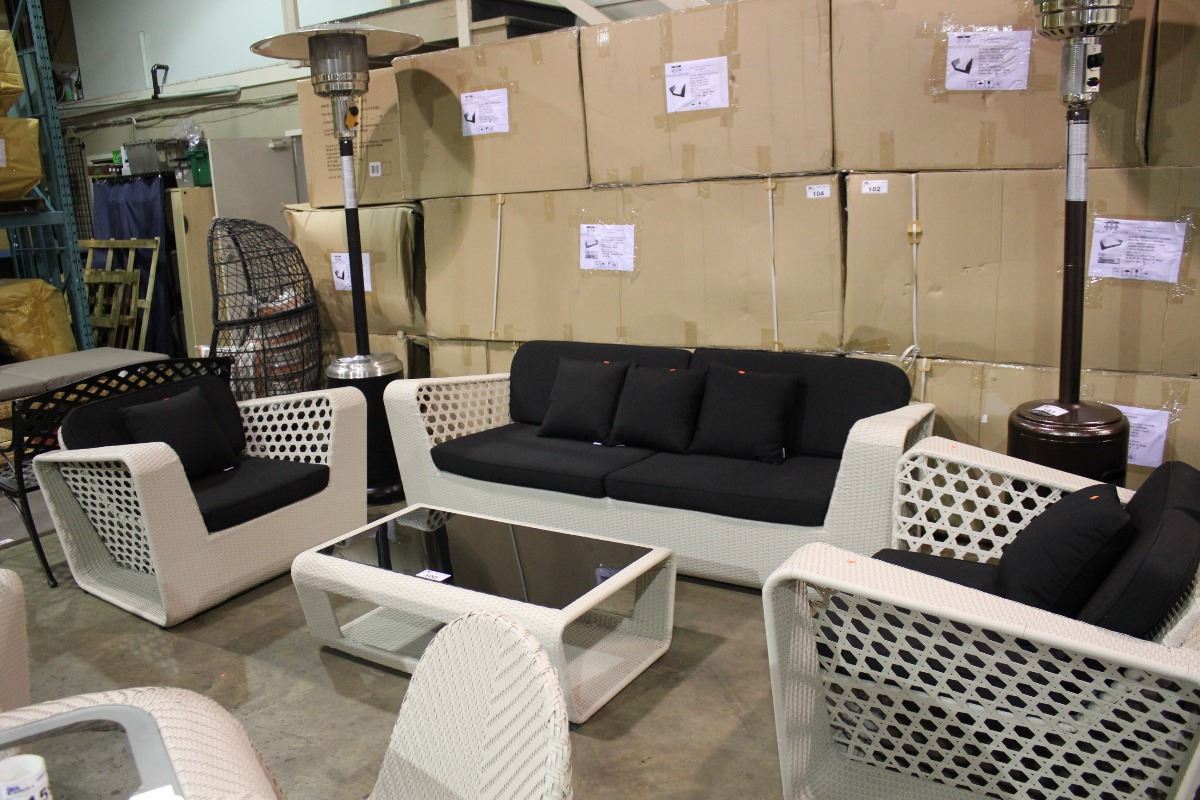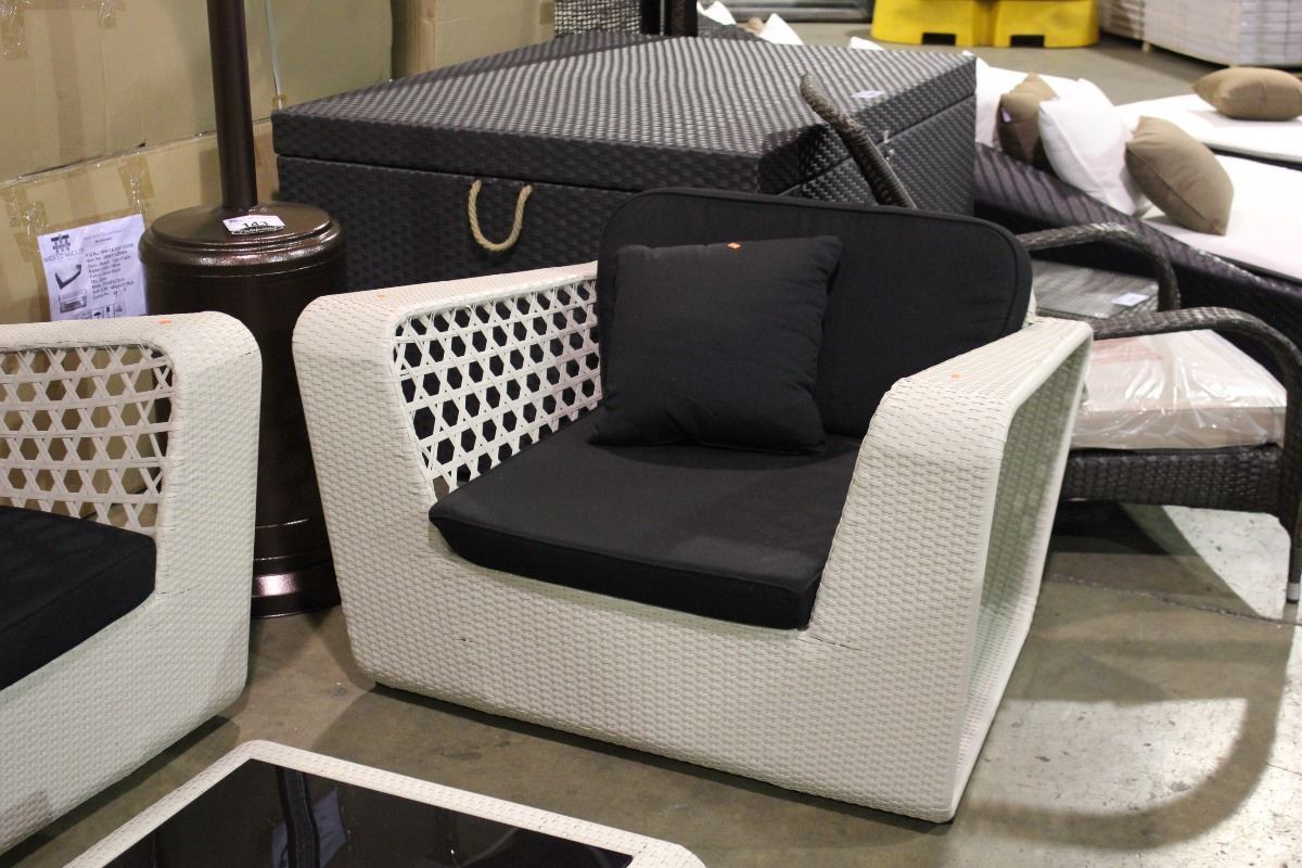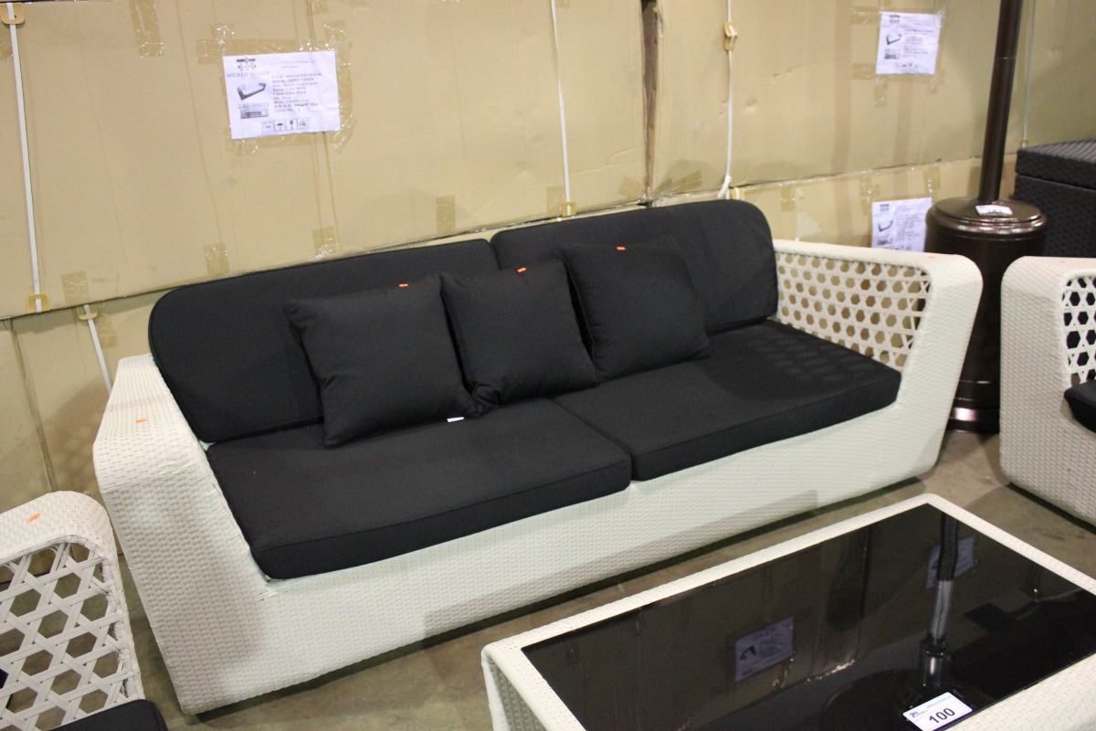 WICKED WICKER 4 PIECE WHITE & BLACK OUTDOOR PATIO SOFA SET INCLUDING: COUCH, 2 CHAIRS, COFFEE TABLE (3 BOXES)