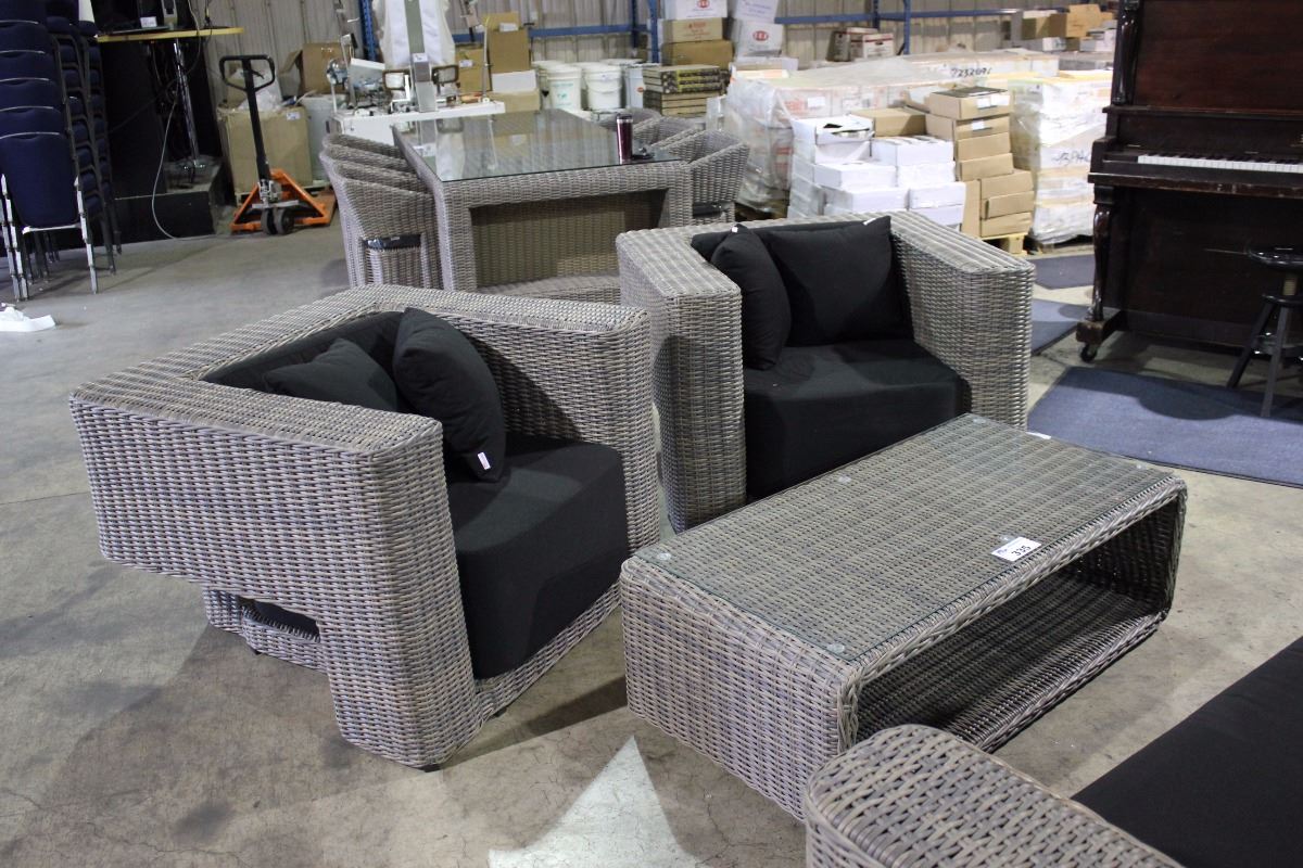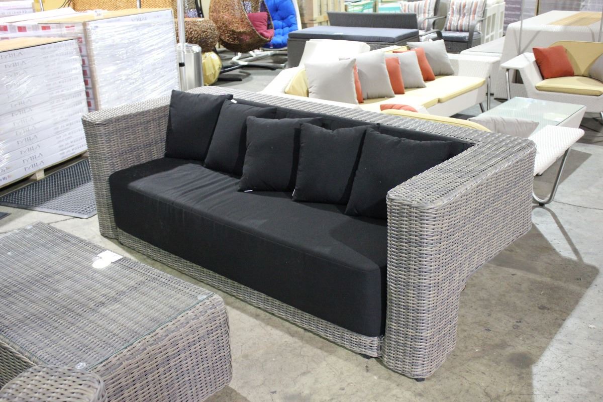 WICKED WICKER GREY WOVEN & BLACK OUTDOOR SOFA SET INCLUDING: SOFA, 2 CHAIRS & COFFEE TABLE (DISPLAY SET)