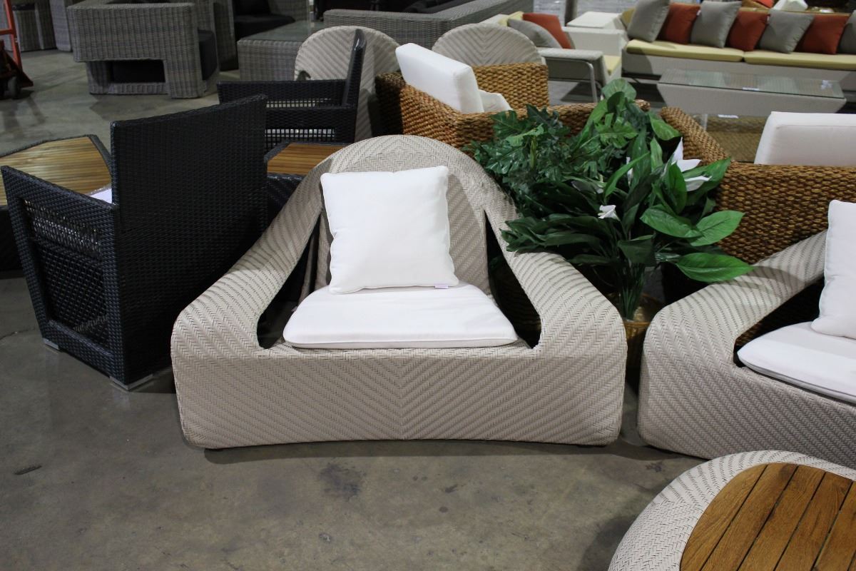 WICKED WICKER WHITE WOVEN OUTDOOR PATIO SOFA SET INCLUDING: LOVESEAT, 2 CHAIRS & COFFEE TABLE (4 BOXES)