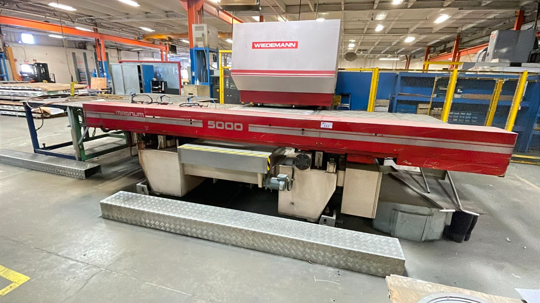 WIEDMANN MAGNUM 5000 TURRET PUNCH MACHINE WITH MURATEC TALKATIVE PIII CNC CONTROL SYSTEM, 45 TON CAPACITY, 45 TONS, 52 STNS, 2 A.I., FANUC 6MB, WILL BE PROFESSIONALLY DISCONNECTED, REQUIRES HIAB/CRANE