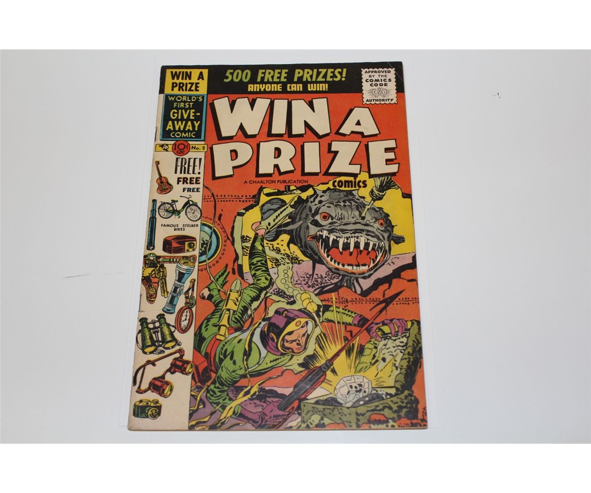 WIN A PRIZE COMICS #2 (1955) A VERY EARLY CHARLTON FEATURING SIMON & KIRBY ART. HIGHER MID GRADE EXCELLENT COPY, FLAT, GLOSSY, TIGHT & & SUPPLE. RARE IN SUCH NICE CONDITION, A GEM!