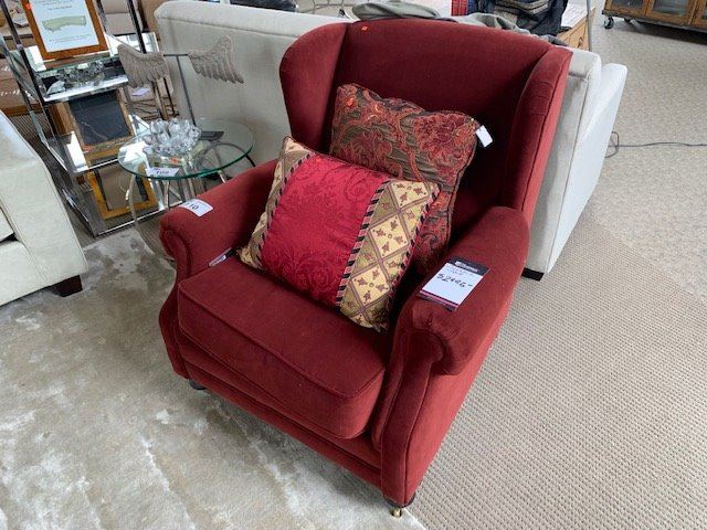 WINE FABRIC WING BACK ARM CHAIR WITH THROW PILLOWS