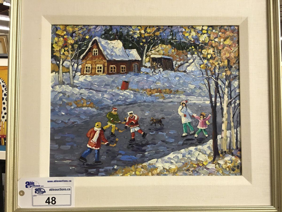 'WINTER FUN' OIL ON BOARD PAINTING 16" X 20" BY ROD CHARLESWORTH