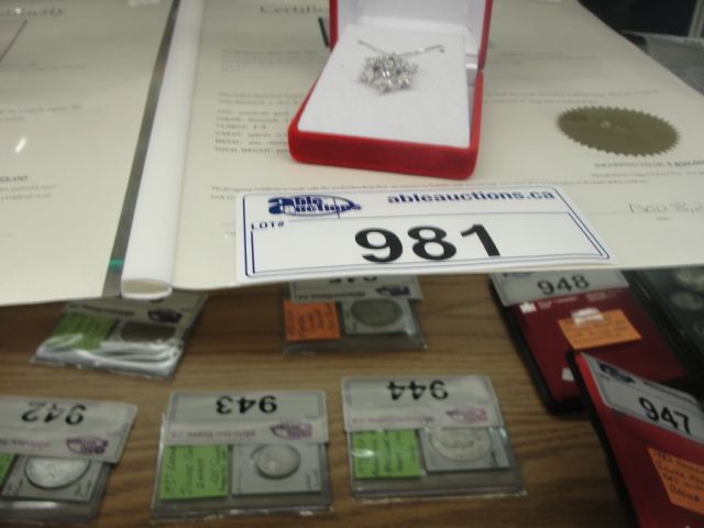 WINTER SNOWFLAKE NECKLACE SET WITH 9 BLUE AND WHITE DIAMONDS. INCLUDES $450 CERTIFICATE