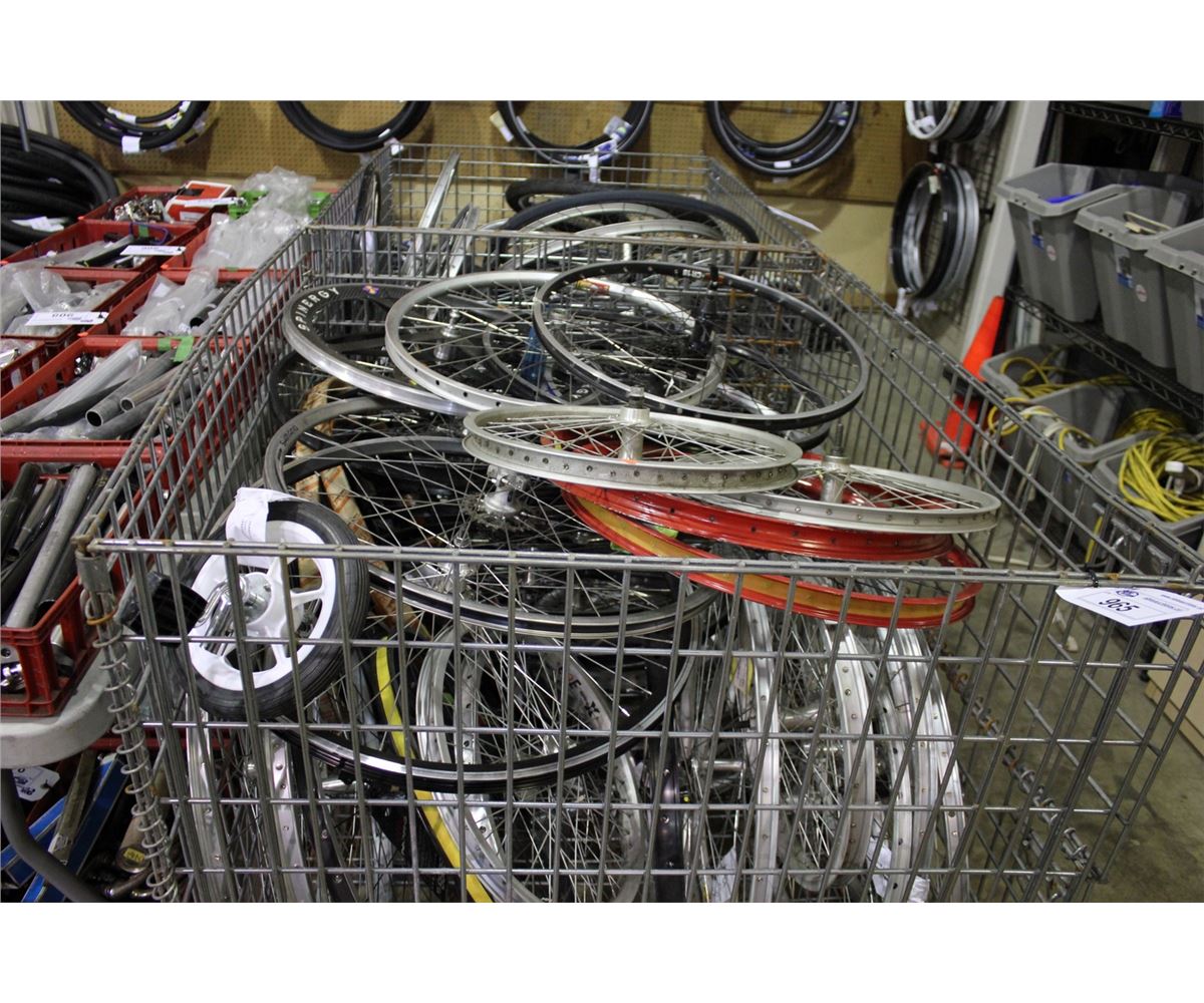 WIRE BIN OF ASSORTED BIKE RIMS BIN NOT INCLUDED